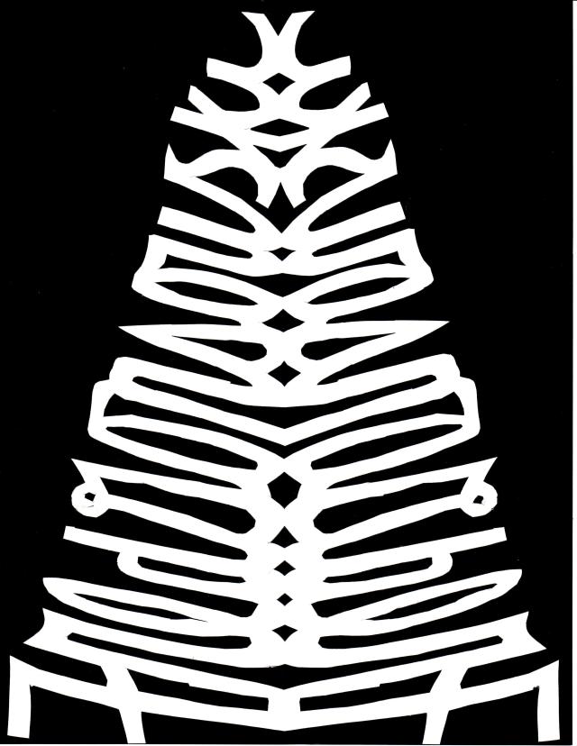 Step 5 ..After completely cutting out your name, unfold and glue it to a Bright or Dark piece of colored construction paper. If you want, stop there. As an adult, I appreciate the simplicity of just the white silhouette against a dark background. But as a kid I liked the tree decorated.