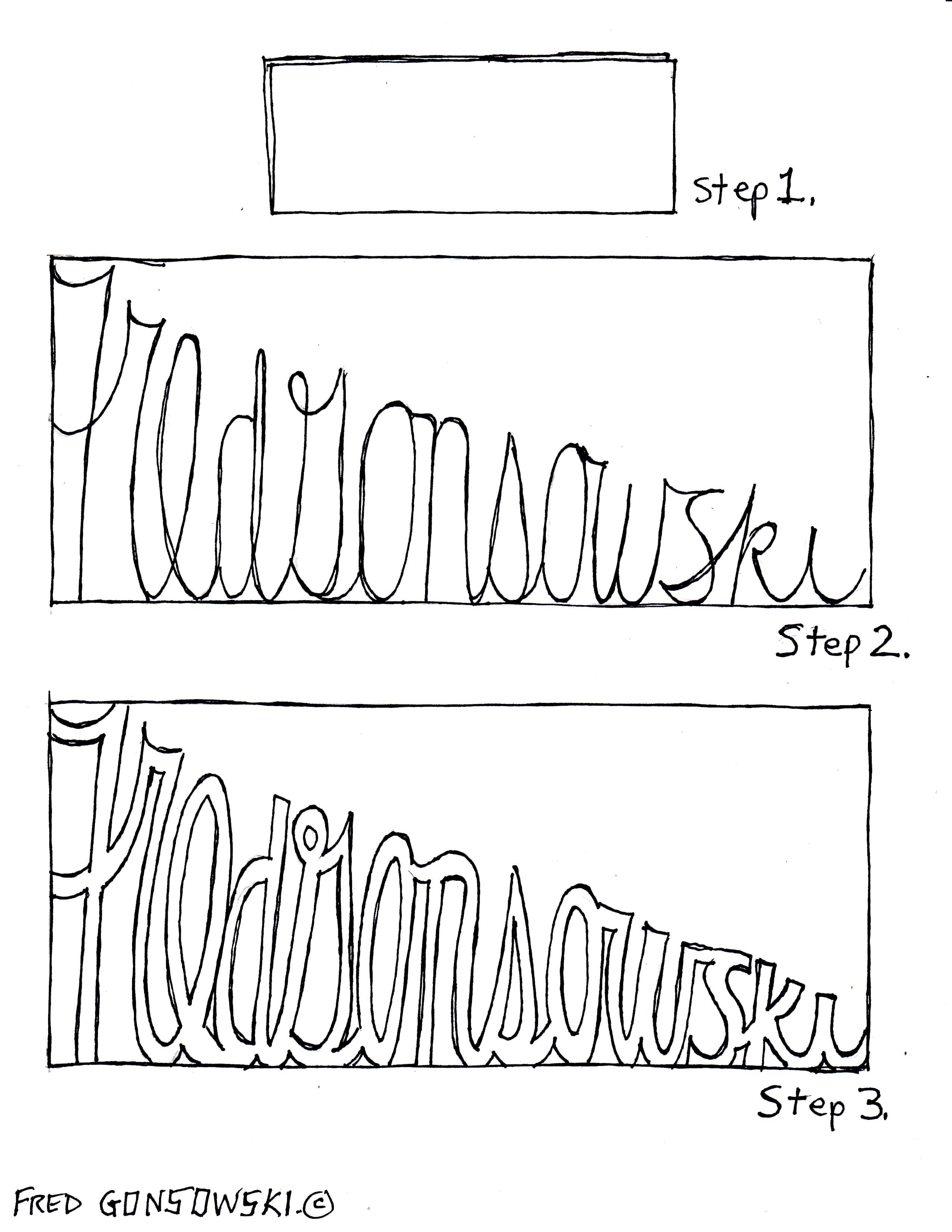 Step 3 ..With your pencil, lightly draw around your signature so your name is not just a pencil line, but has some volume / thickness. Make sure it touches the bottom fold and is thick enough, because this will be your guide when you go to cut out your name.