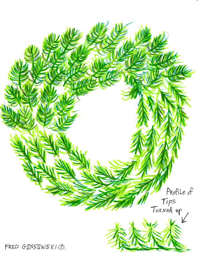 Take the first tip closest to the outside of your wreath and bend it outward and lift it upward. Then bend and turn the end of that tip upward to face you. Kind of like a soft “J“. (see illustration (Profile of tips turned up).