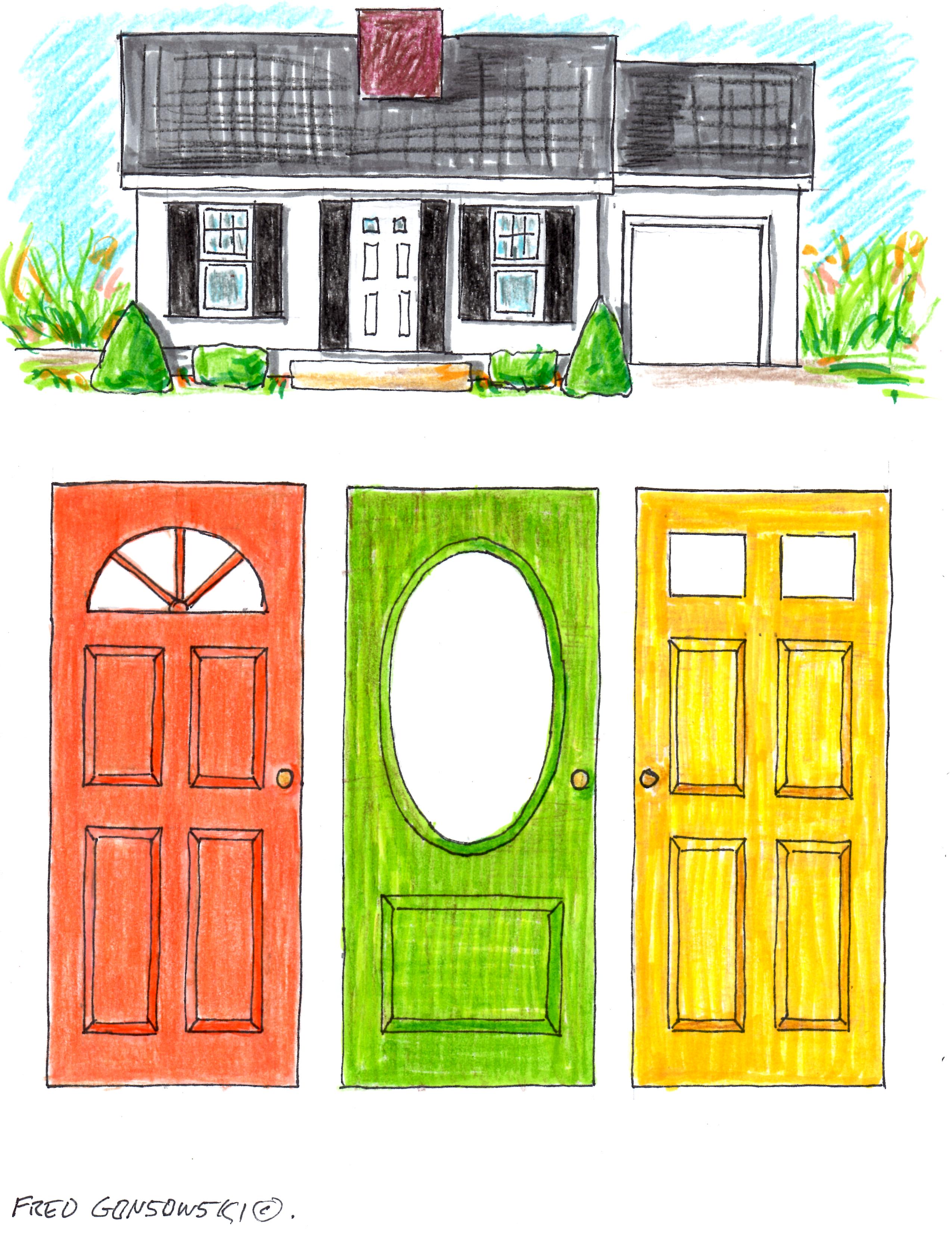1. You know me Fred: ORANGE doors (and trim). Can’t resist. Love your illustrations.