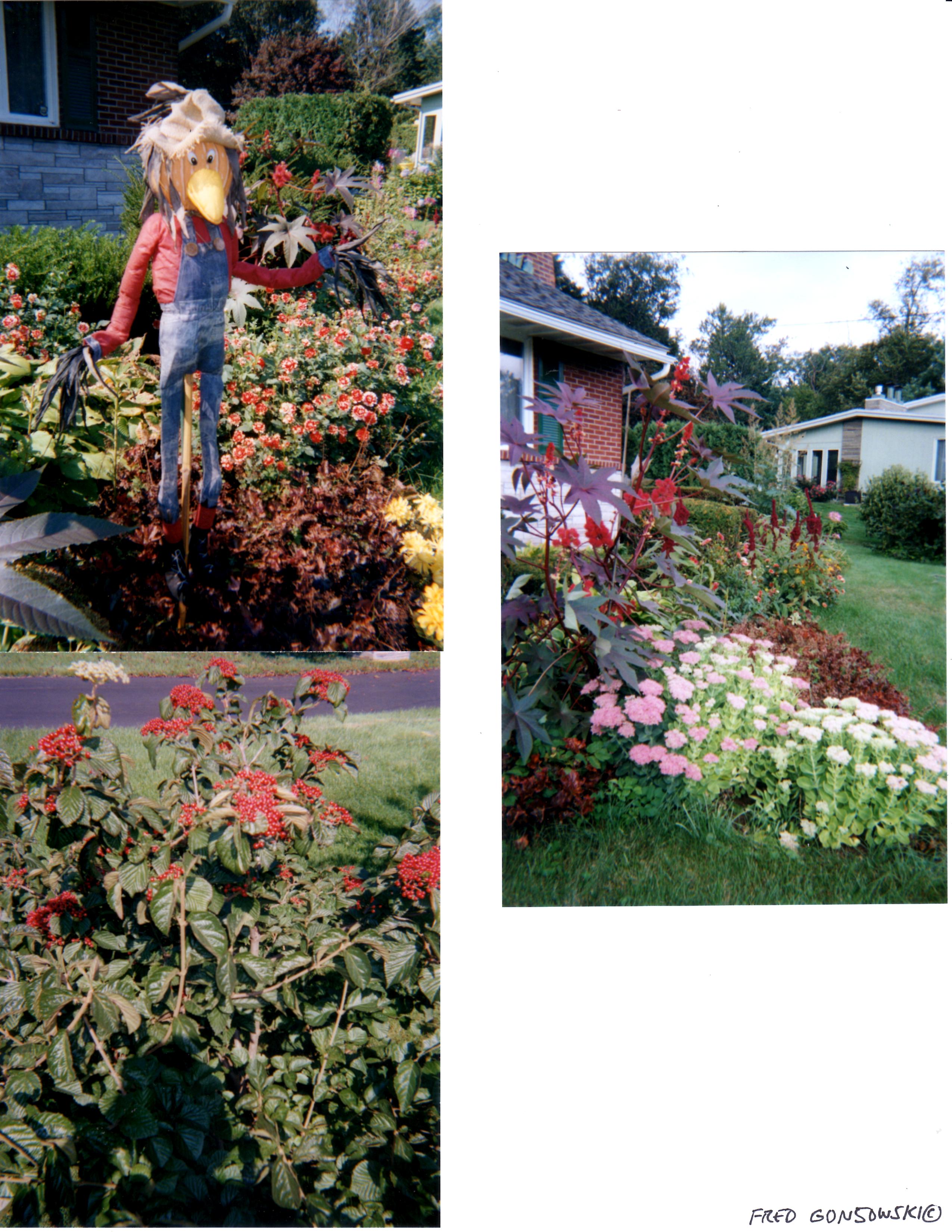 I pull out the annuals, chop down the perennials, dig up the dahlias, canna, glads and elephant ears that have been frost-bitten, and finally grind over everything with the lawn mower, to ready the land for next years gardening cycle to start again.