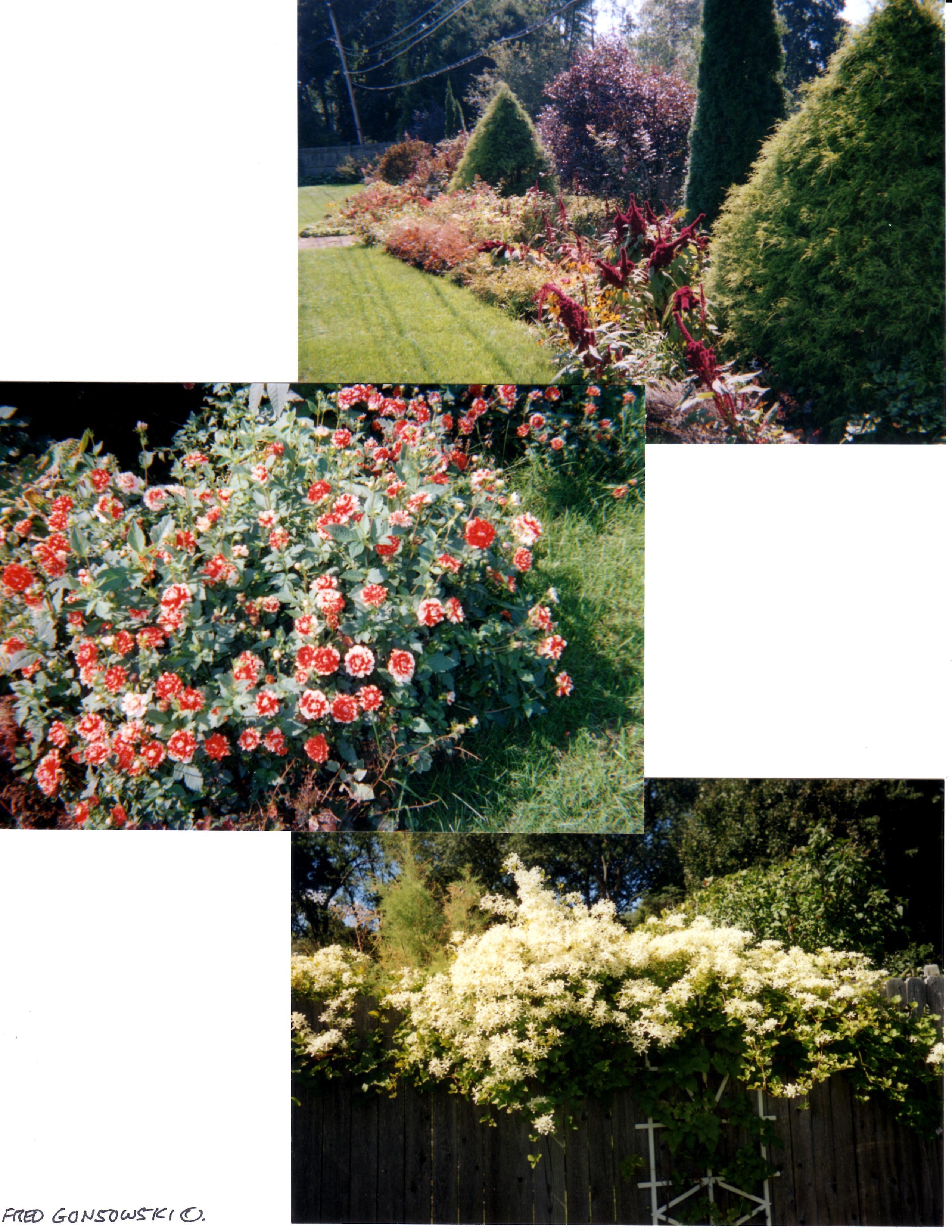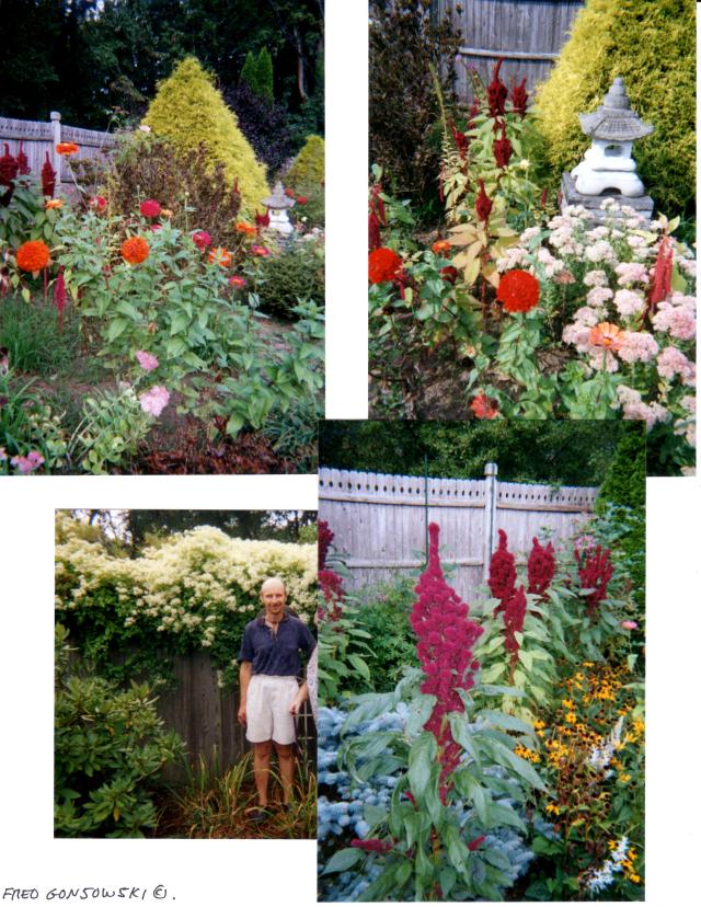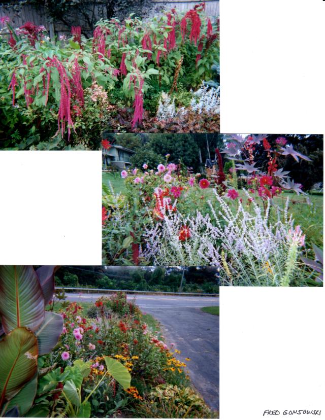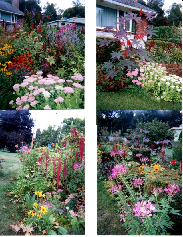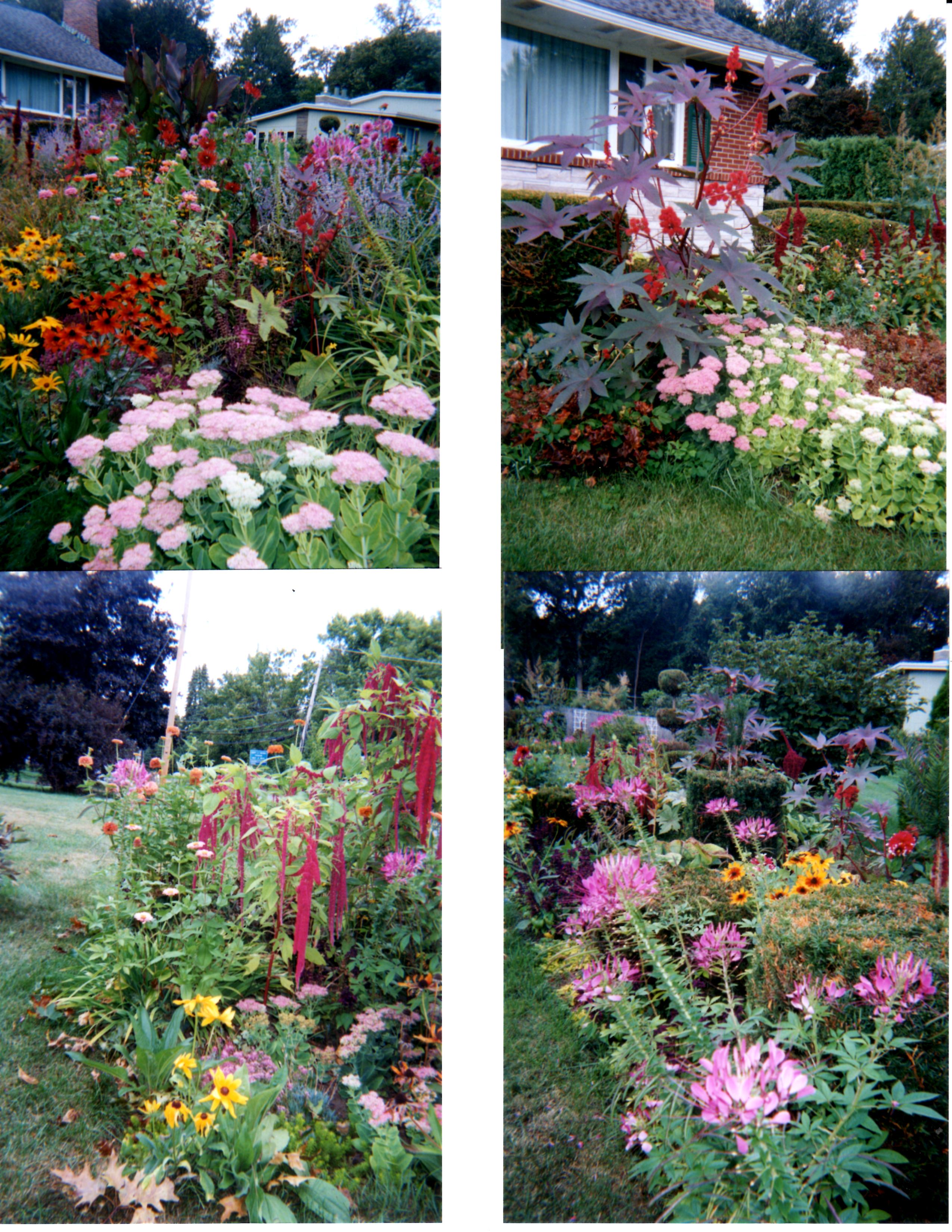Those calm looking, somewhat cool colors are replaced with the fire colors of red, orange, yellow, some hot pinks, and purple during July and early August. The garden then reverts, one more time, to mostly shades of pink and rose, with some yellows and purples before the gardening season ends with the first killing frost.