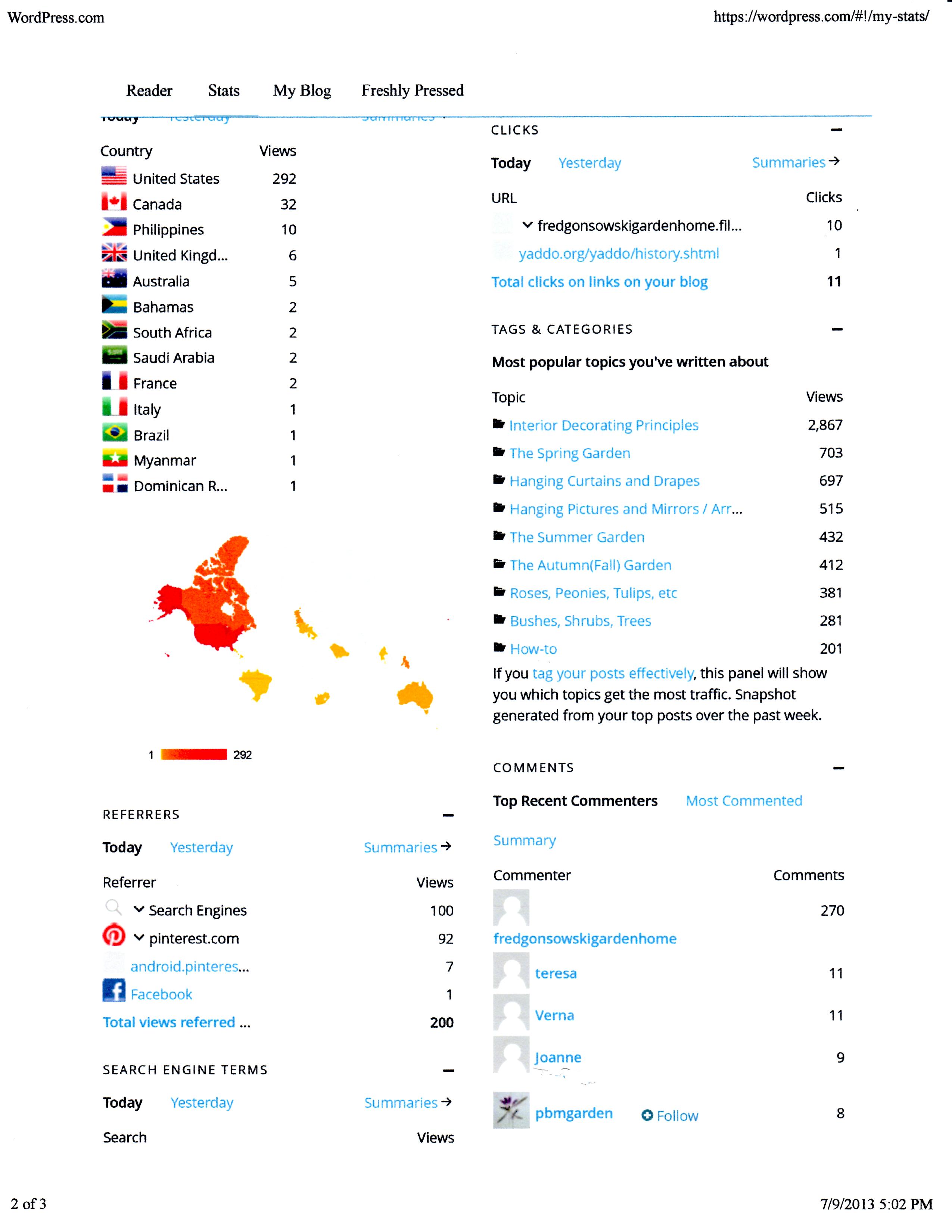 • Hi there Teresa, you know you and Verna are neck to neck as commenters on this blog, followed by Joanne, who is one comment behind Verna for the moment. You will have to make a second comment if you want to be the star commenter on this site. Just kidding ;-} I thought when I posted the blog statistics, and some of what is seen from this side, it would be of interest to the readers.