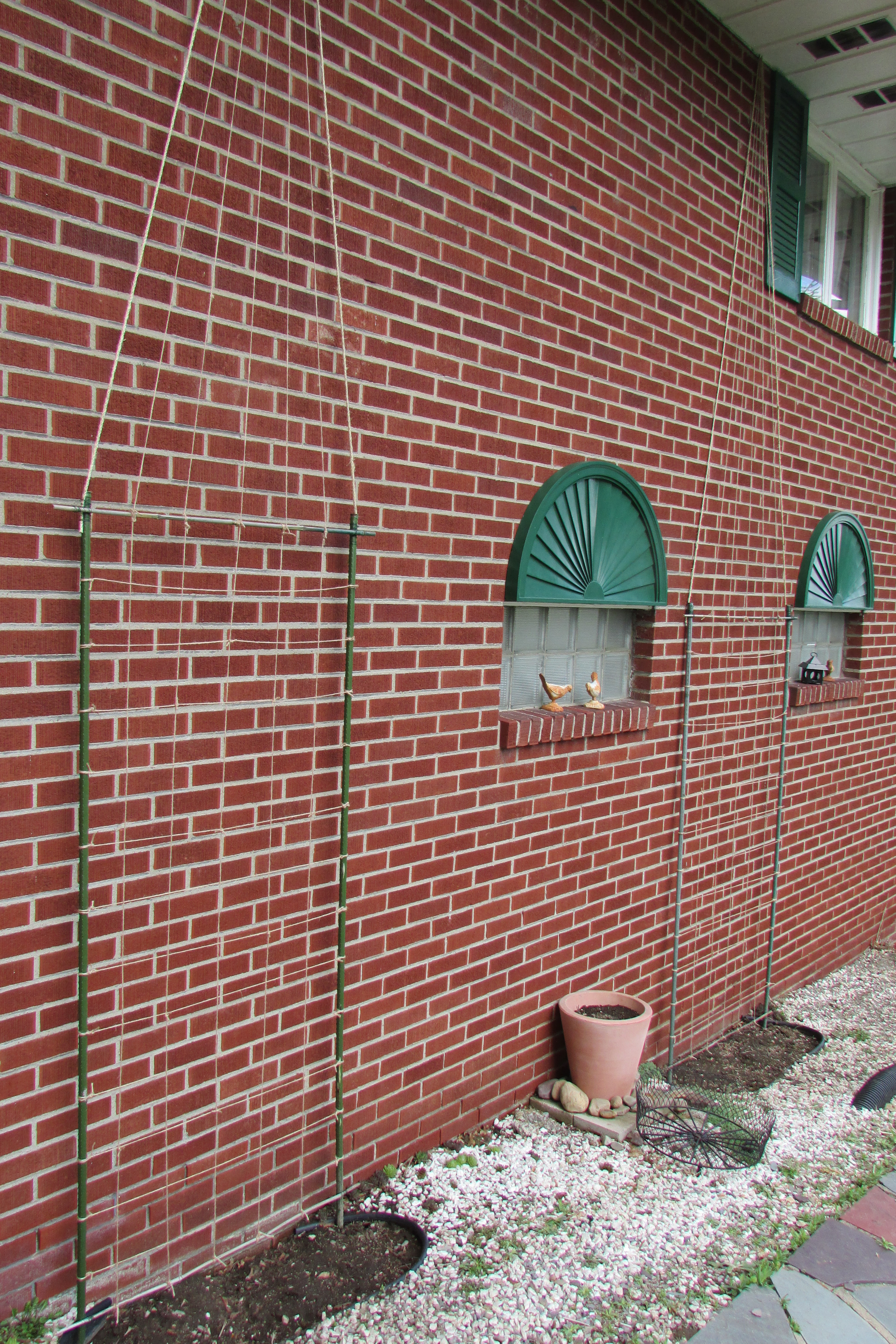 The next photo shows two trellises waiting for the planting of morning glory vines on the side of my house.IMG_0377