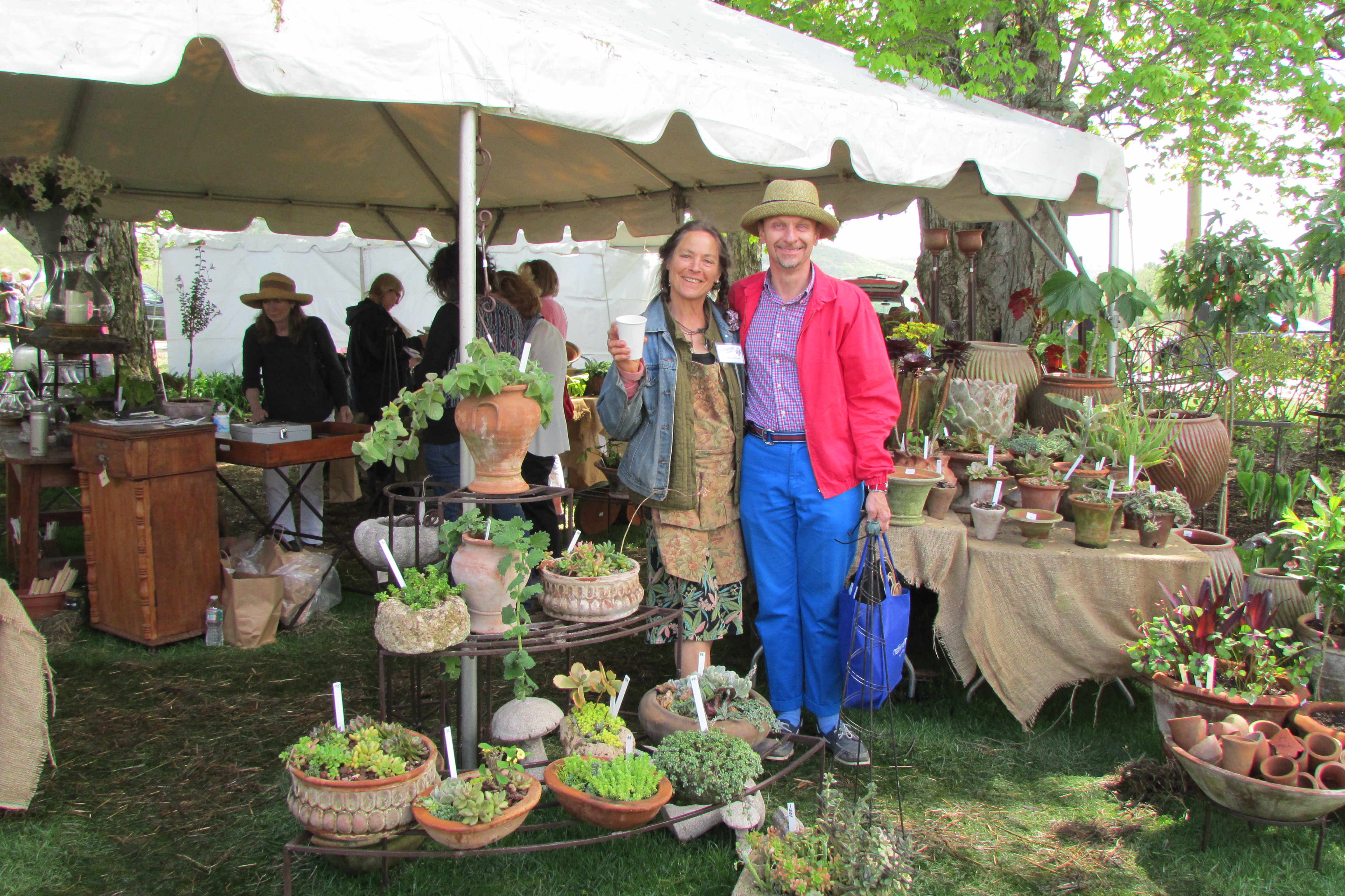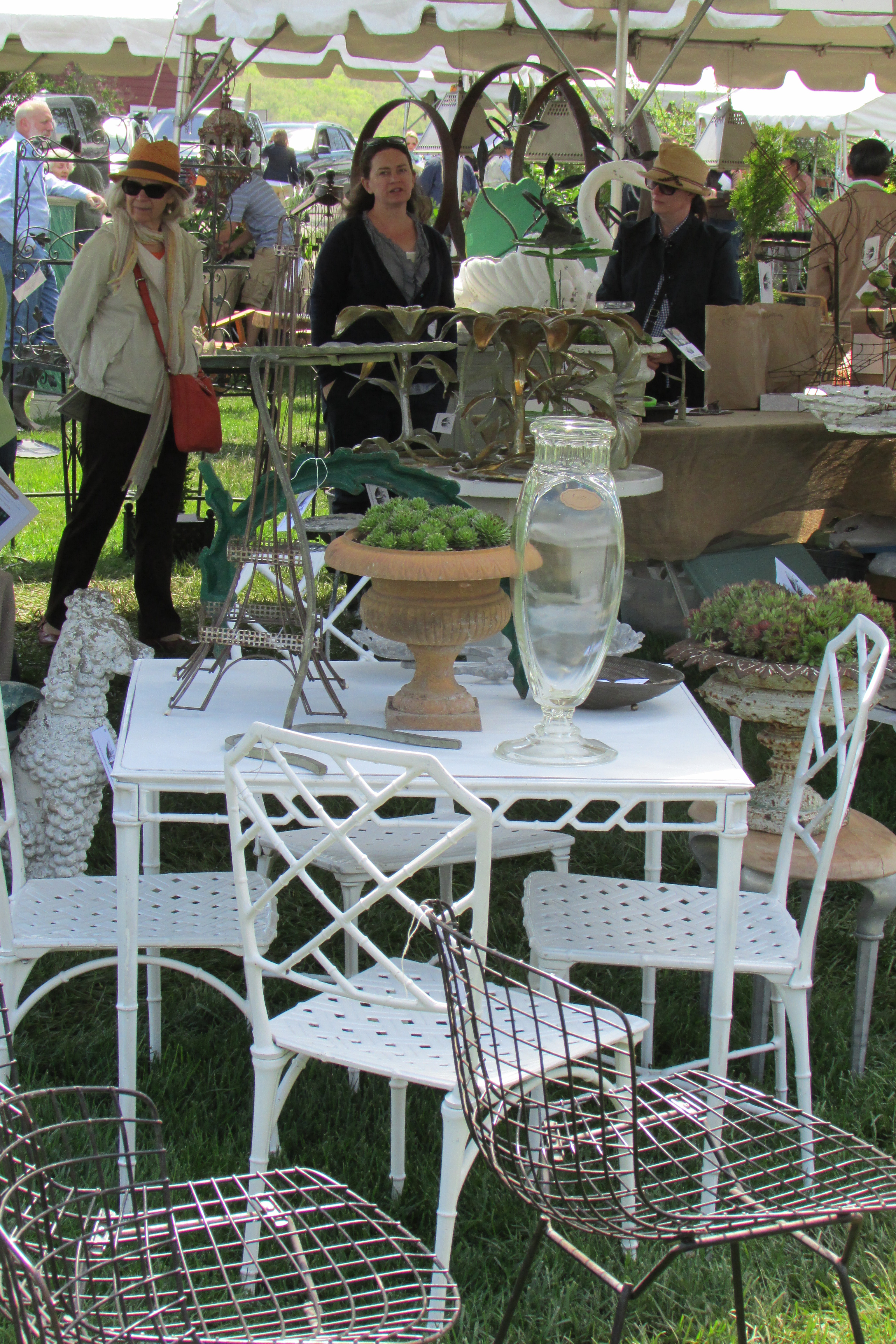 Trade Secrets started in Bunny Williams and her husband John Rosselli’s back yard (country estate) in Falls Village, Ct. Bunny is a nationally known interior designer, author of books on interior decorating and gardening, and has lectured, her husband John is a well-known antiques dealer, and together they own Treillage on 75th Street in NYC. When she had a few too many (extra) plants in her greenhouse, Bunny thought why not sell them for charity, so the Woman’s Support Service was called in, along with some local and regional plant purveyors and garden antiques dealers. The group joined together with their offerings, invited in the local and regional people and a stellar gardening event was born. The Trade Secrets plant sale quickly outgrew Bunny and John’s property so it moved on to the Wake Robin Inn, then it migrated to the estate of Elaine LaRoche called “LionRock Farm” in Sharon, Ct where it is held now. From its conception, Trade Secrets has grown into a world-class display of the best of the best, with now 60 venders displaying the most unusual treasures ever seen. Trade Secrets is like going shopping through 60 of the most unique and upscale stores in one day, while enjoying the fresh country air and magnificent views from Elaine LaRoche’s LionRock Farm.