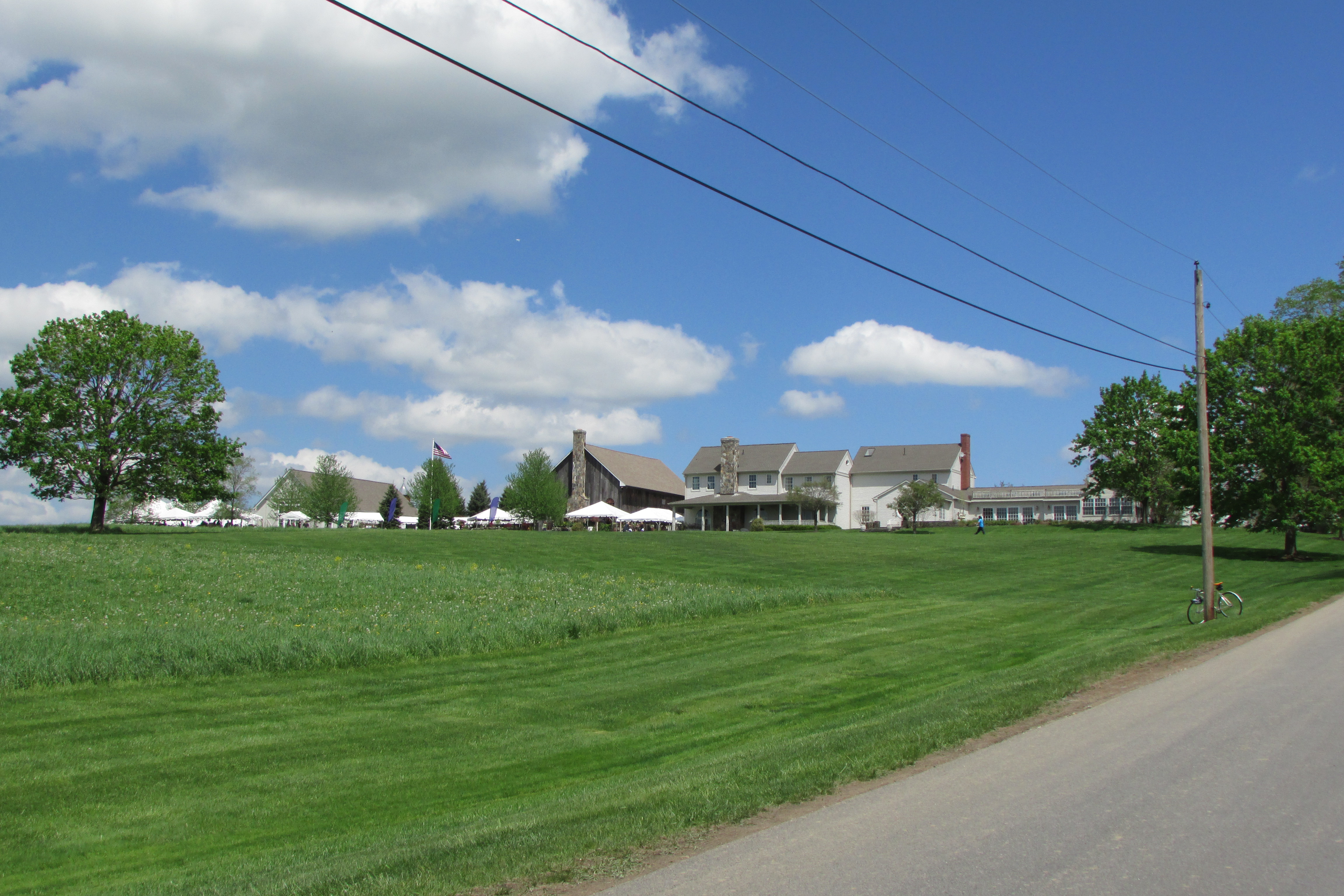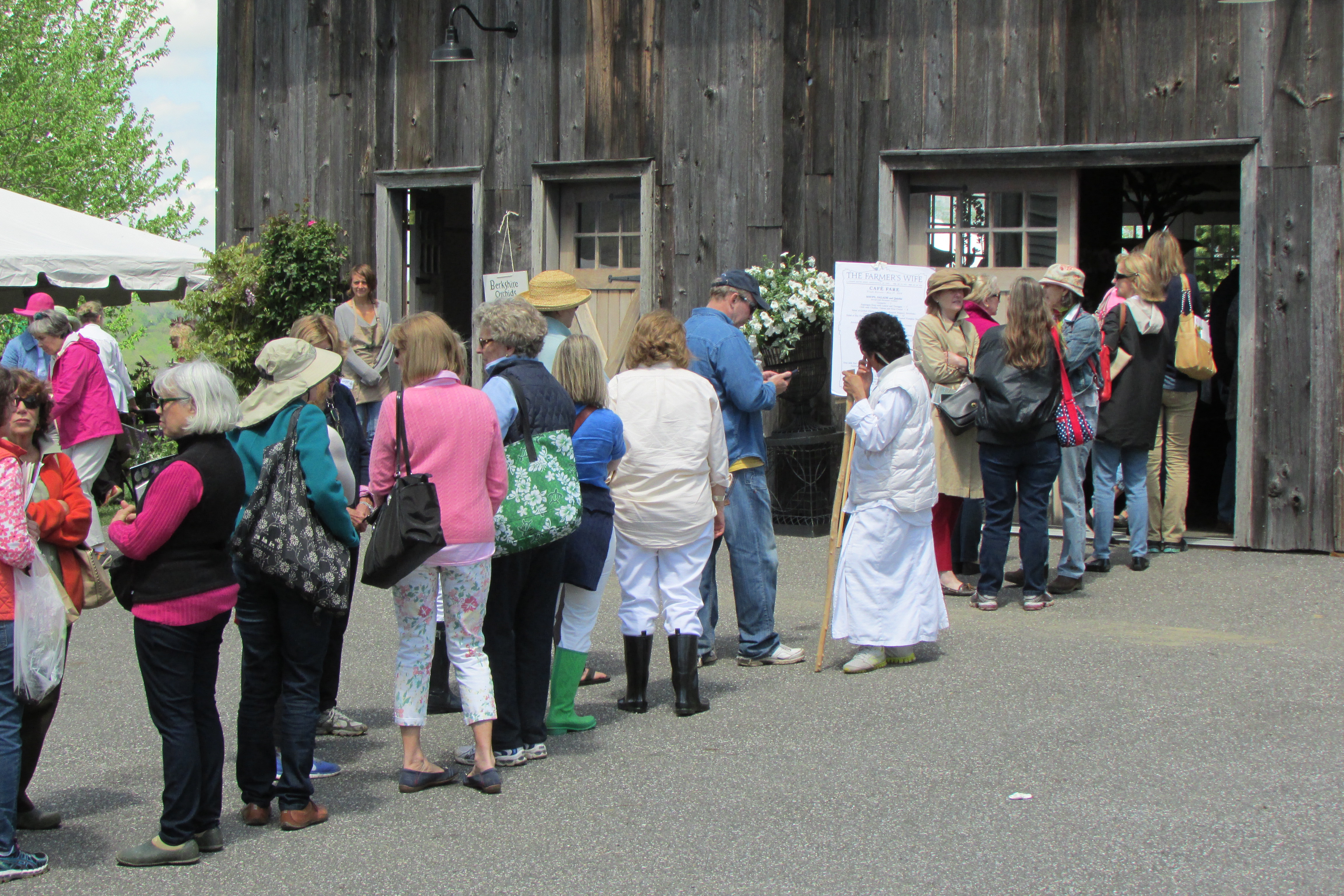 Here is the line of people going into the Party Barn at LionRock Farm for lunch. Gourmet salads, quiches, pulled pork sandwiches and chicken with garbanzo beans, sun-dried tomatoes and artichoke wraps, along with big homemade cookies were part of the lunch time offerings.