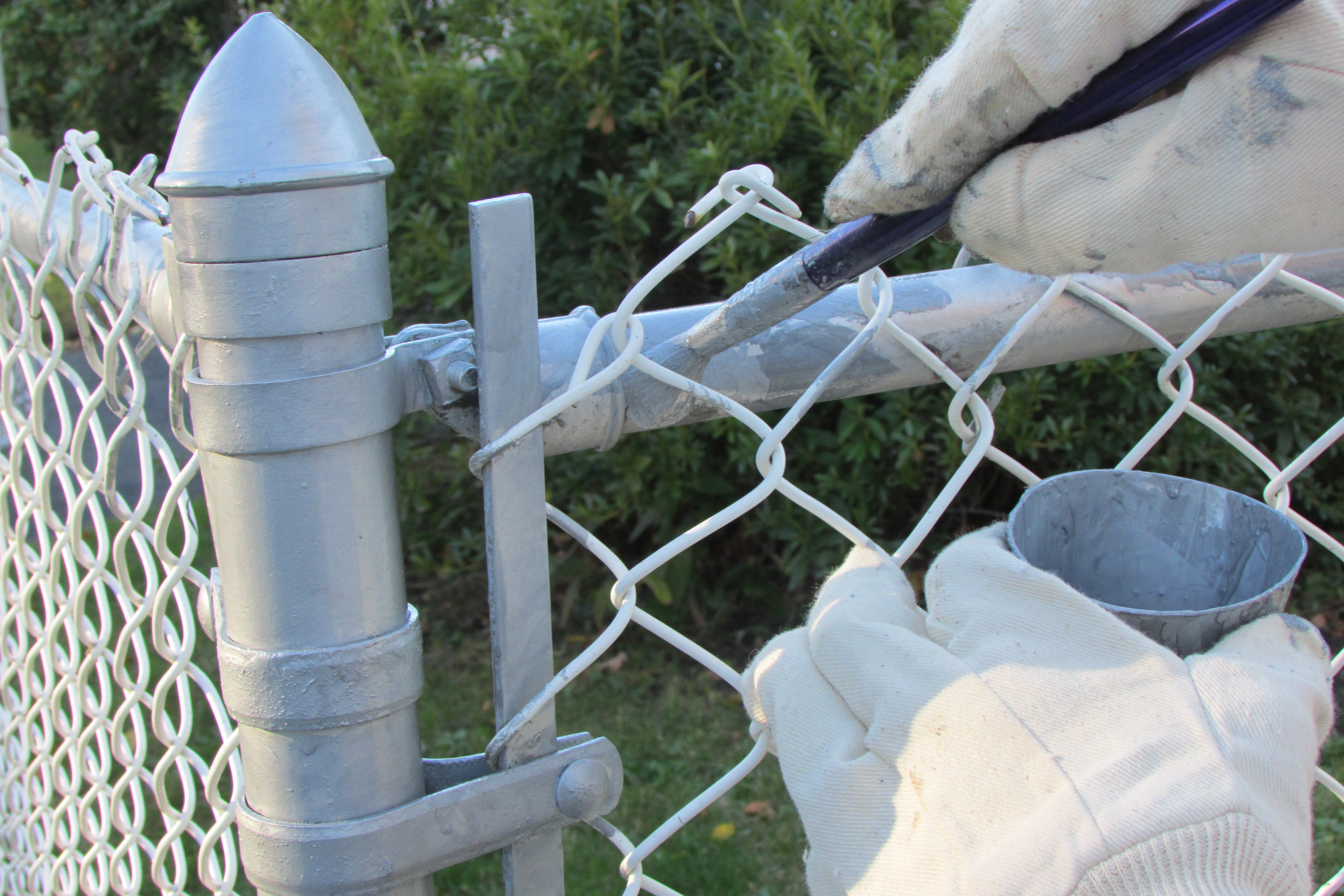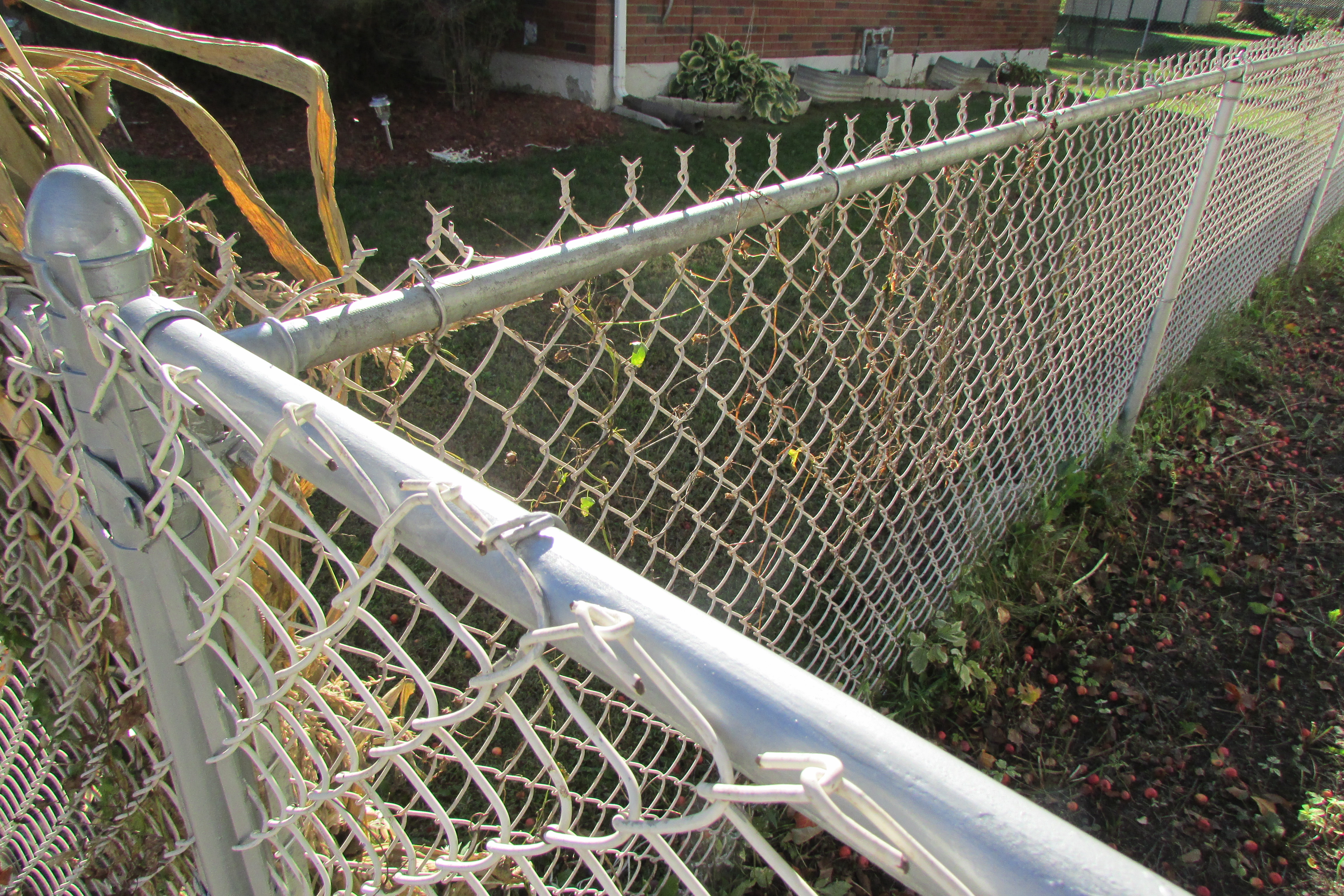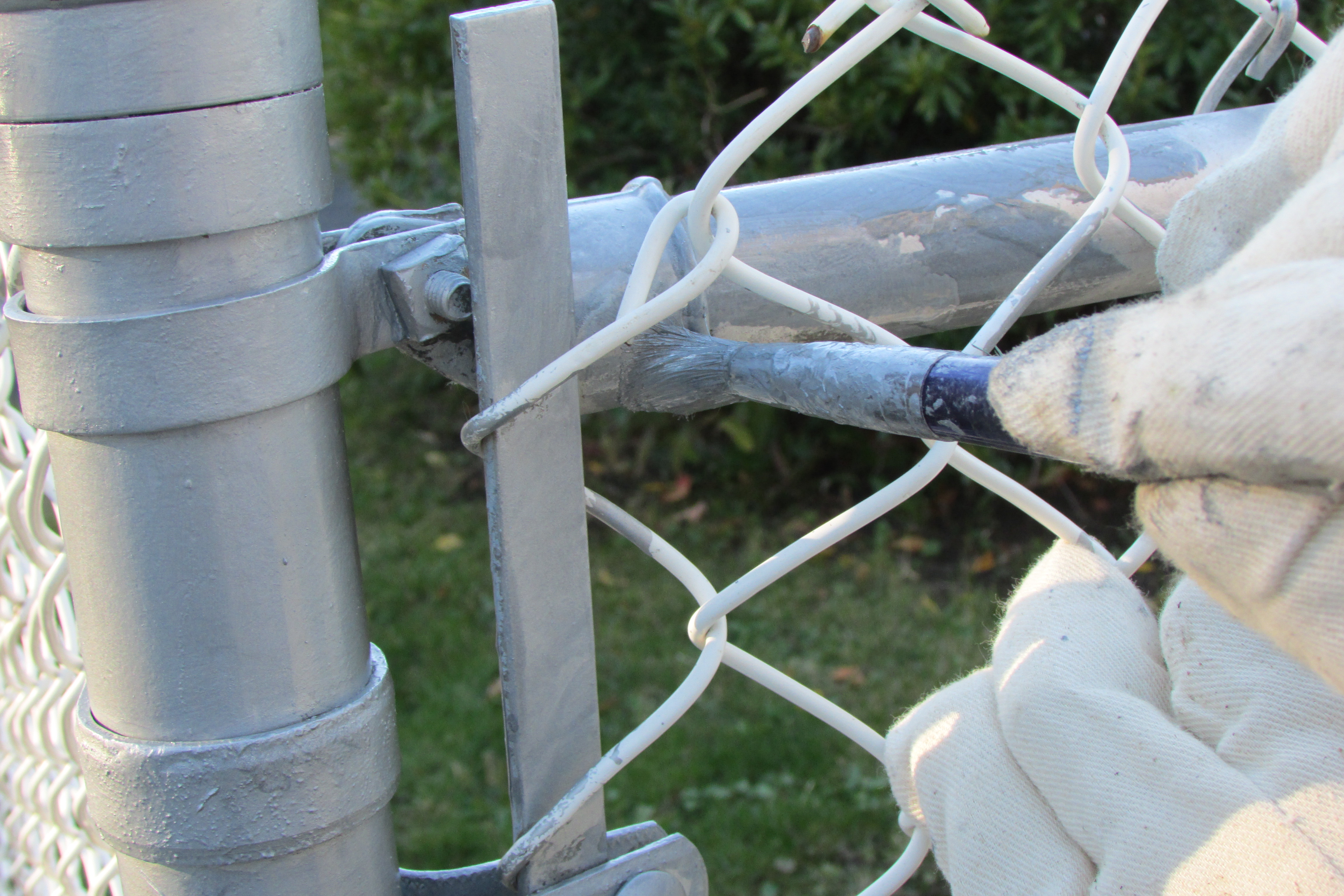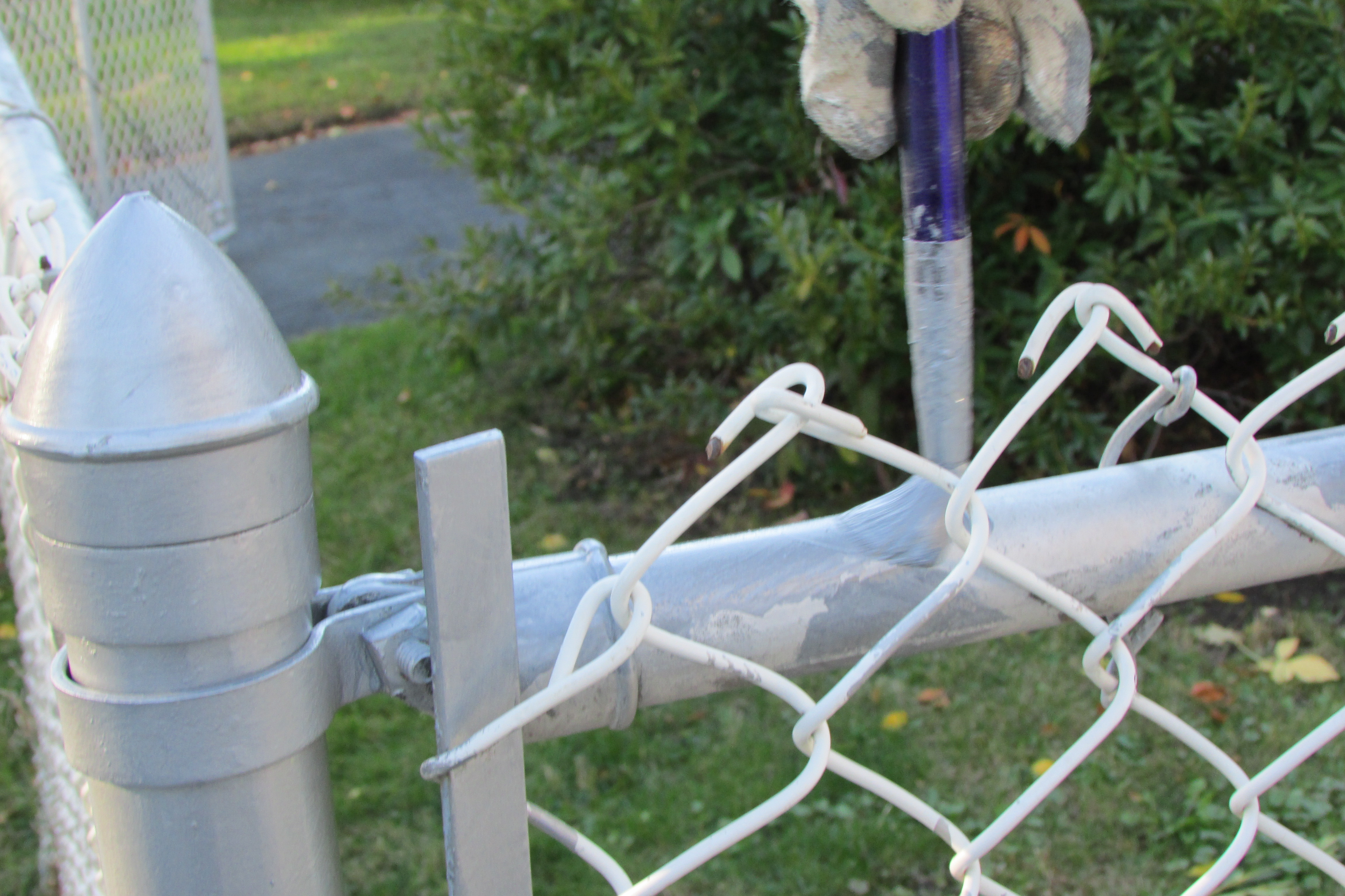 No matter how good quality fencing you purchase, after a while it becomes tired looking and needs freshening. Recently I painted the galvanized metal poles that hold up the vinyl coated chain link fencing at my mother’s house (the fence is 43 years old). Here are my step-by-step instructions on how I did it.