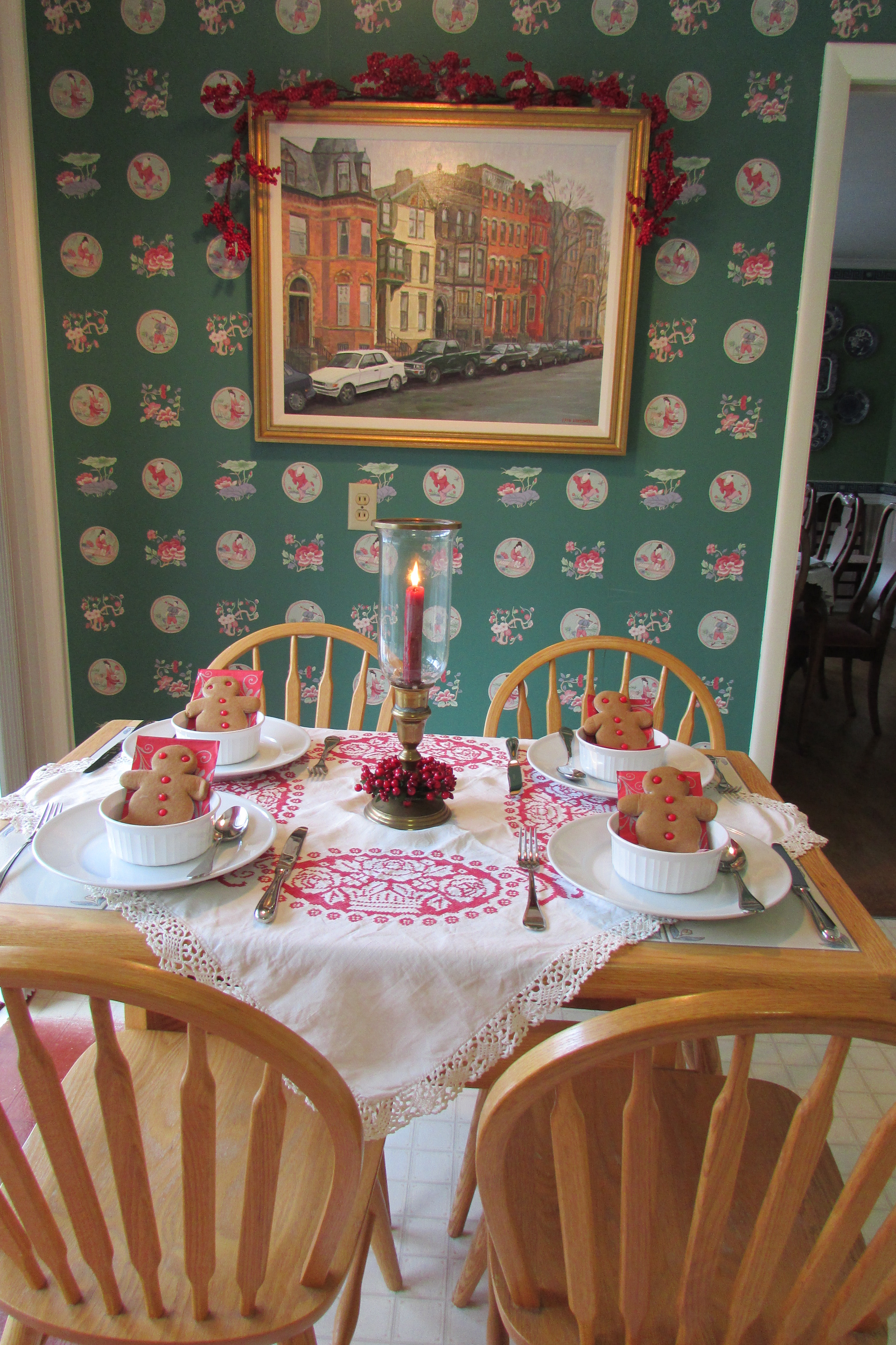 Hi Fred, i just adore the kitchen table set with red and white cloth and gingerbread men cookies! You’ve inspired me to bake some gingerbread myself!