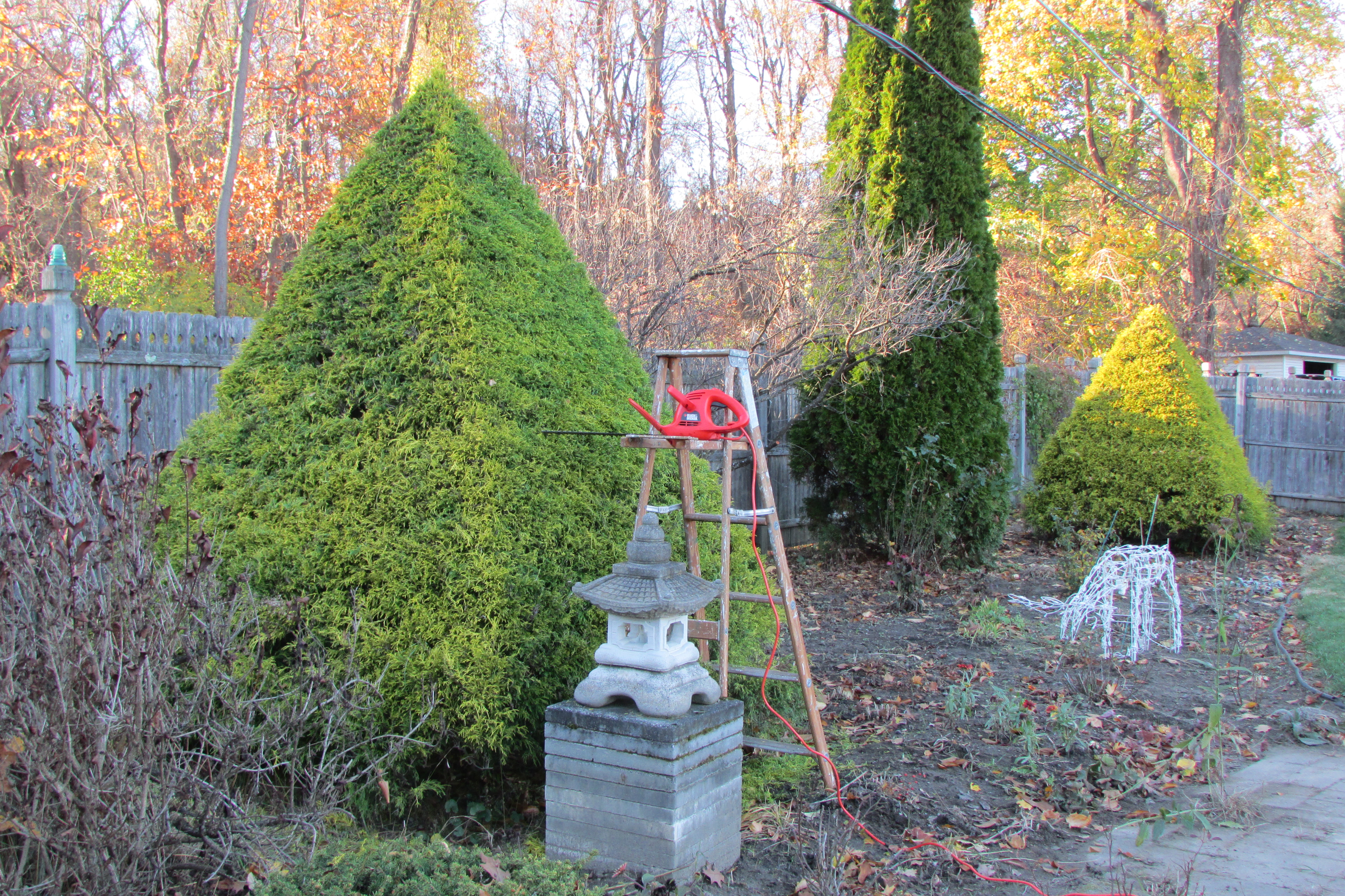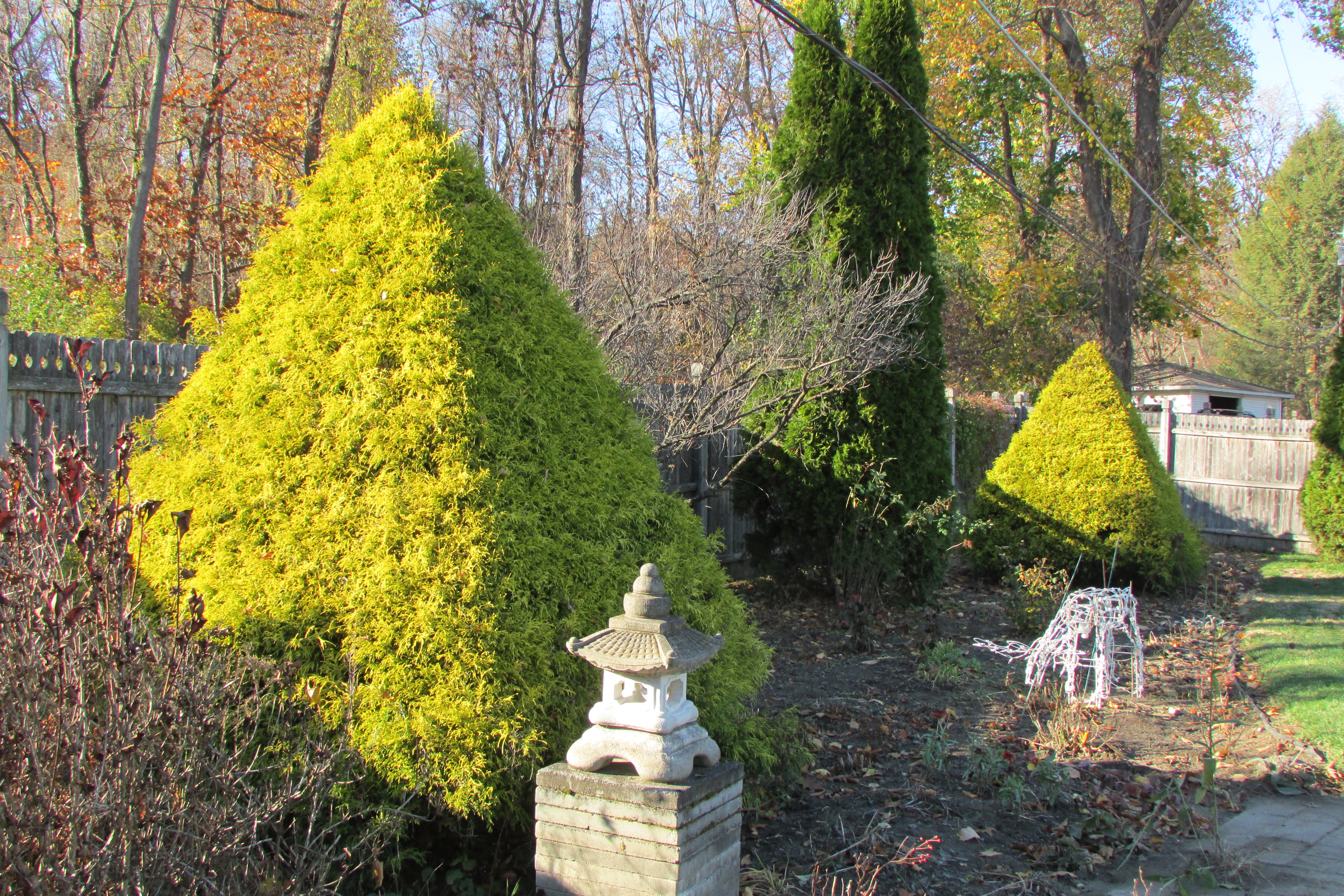 The pair of Golden String Cypress before their Yearly Shearing.