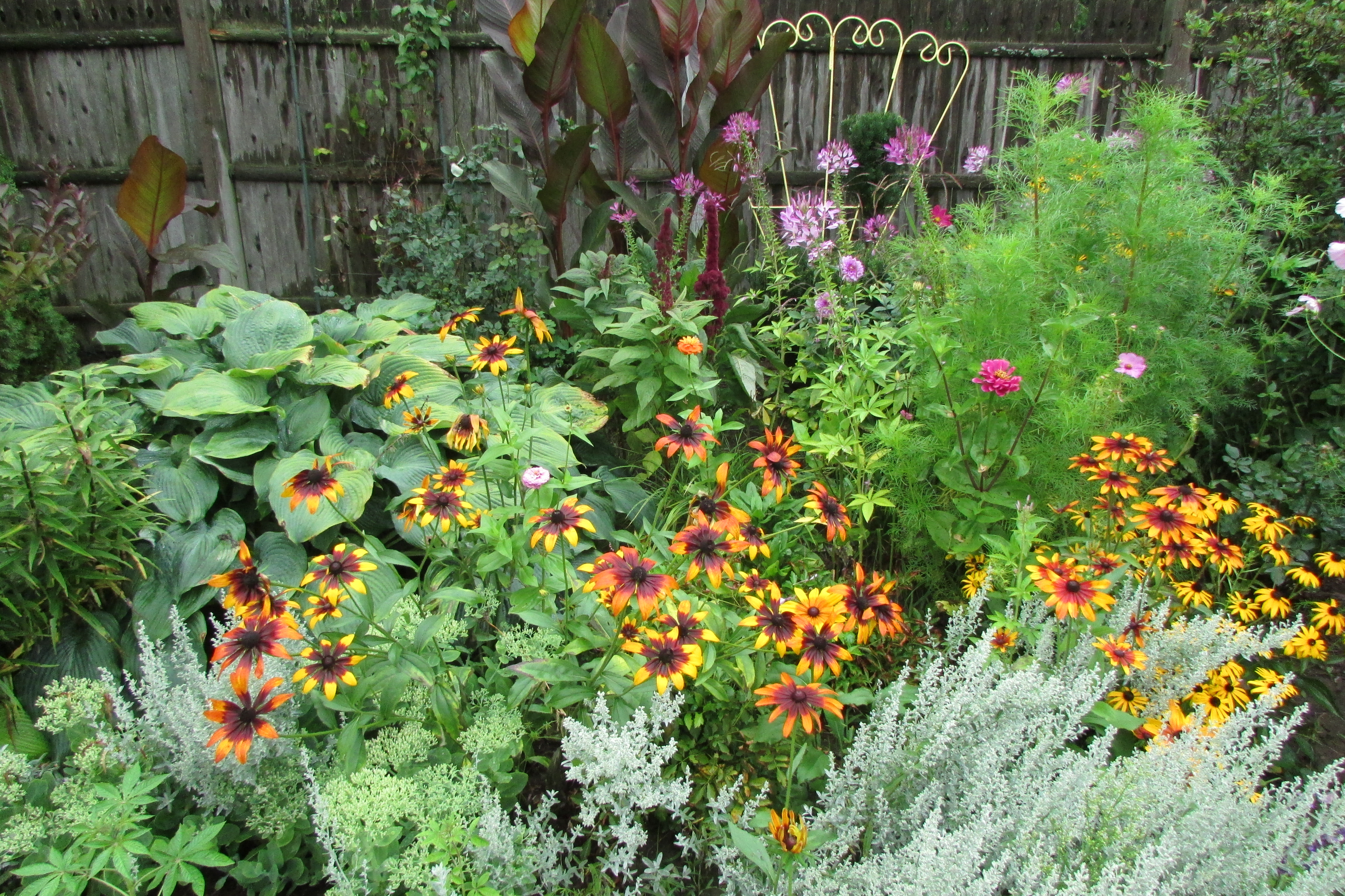 Lovely! And what a labor of love. The pink cosmos are my favorites and do not look discordant– I regret not planting cosmos this year, as they last well past Thanksgiving here. You have some gorgeous hostas, too, especially your large blue angel. Looks like you will have some diving to do shortly. Your time in the garden has been well spent – creating a dynamic canvas this year! I wonder, do you use drip irrigation? Everything seems so well tended and evenly green.