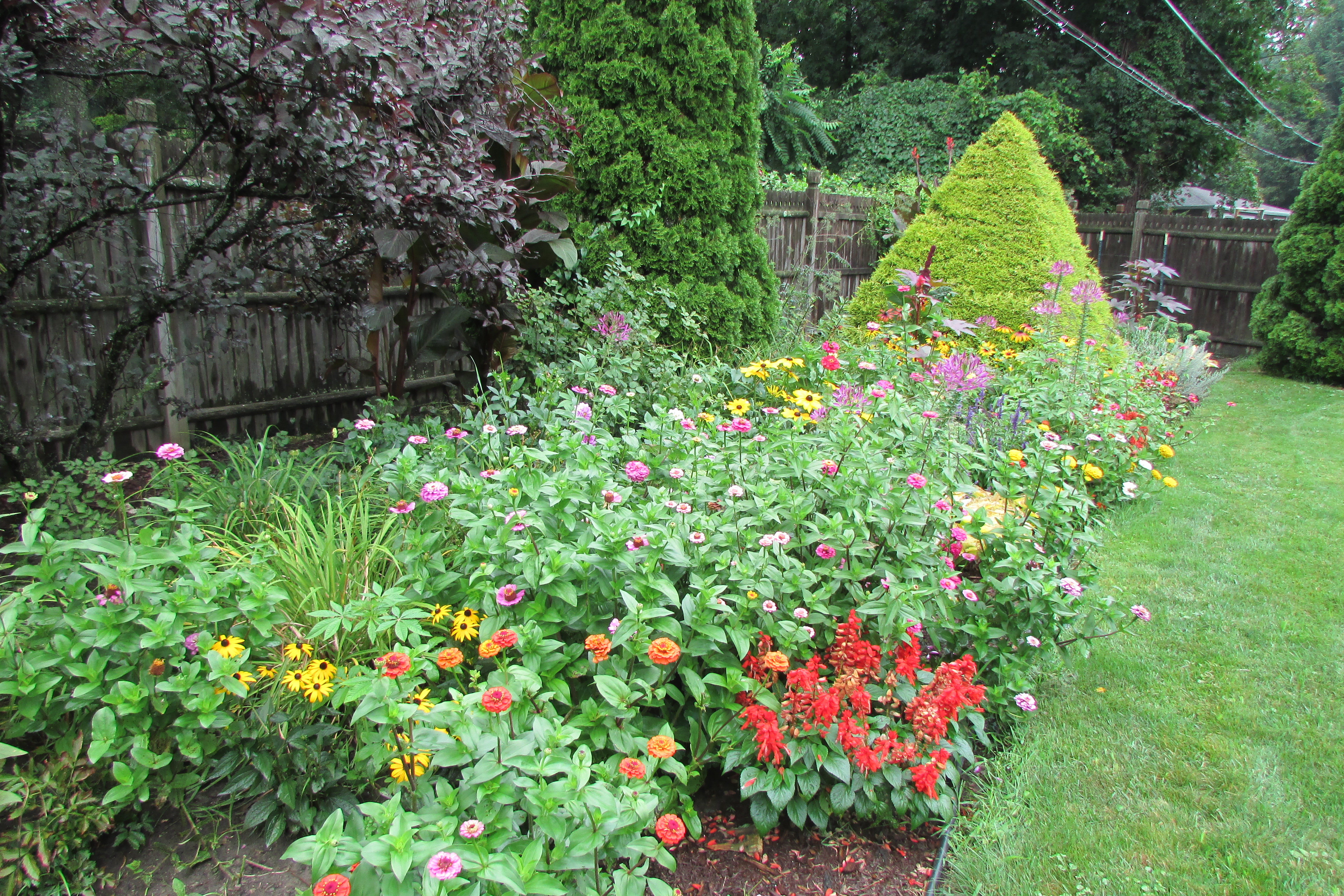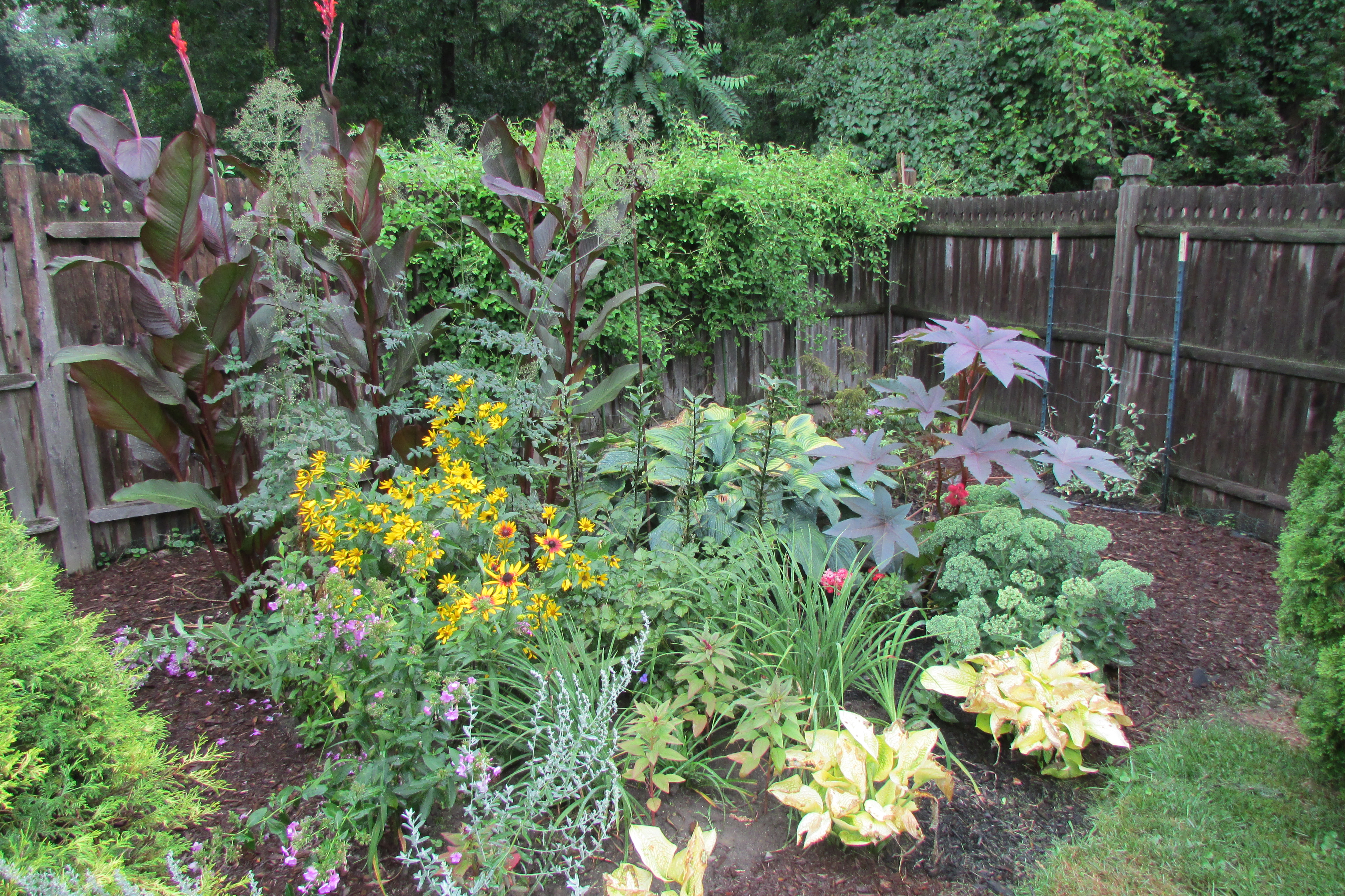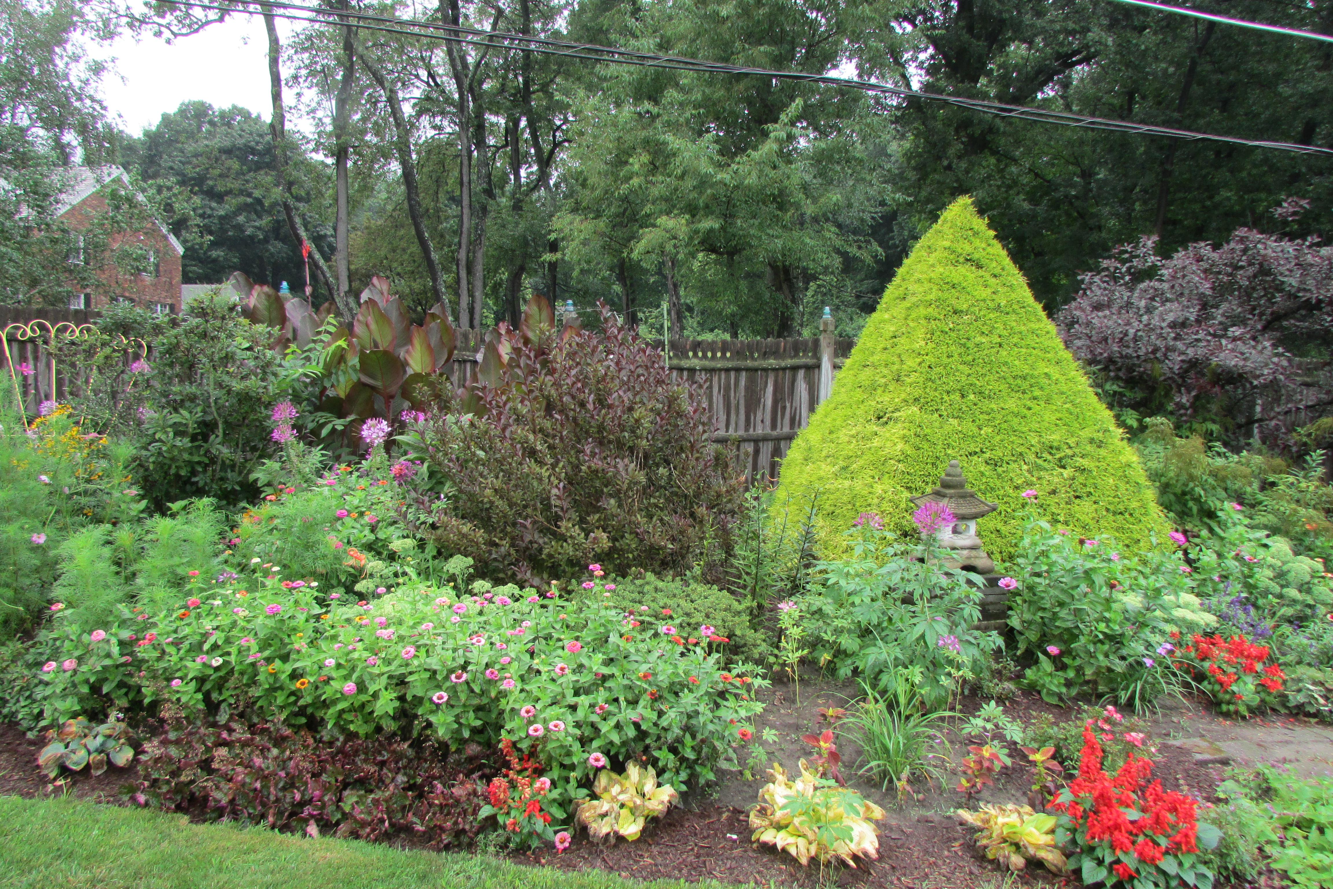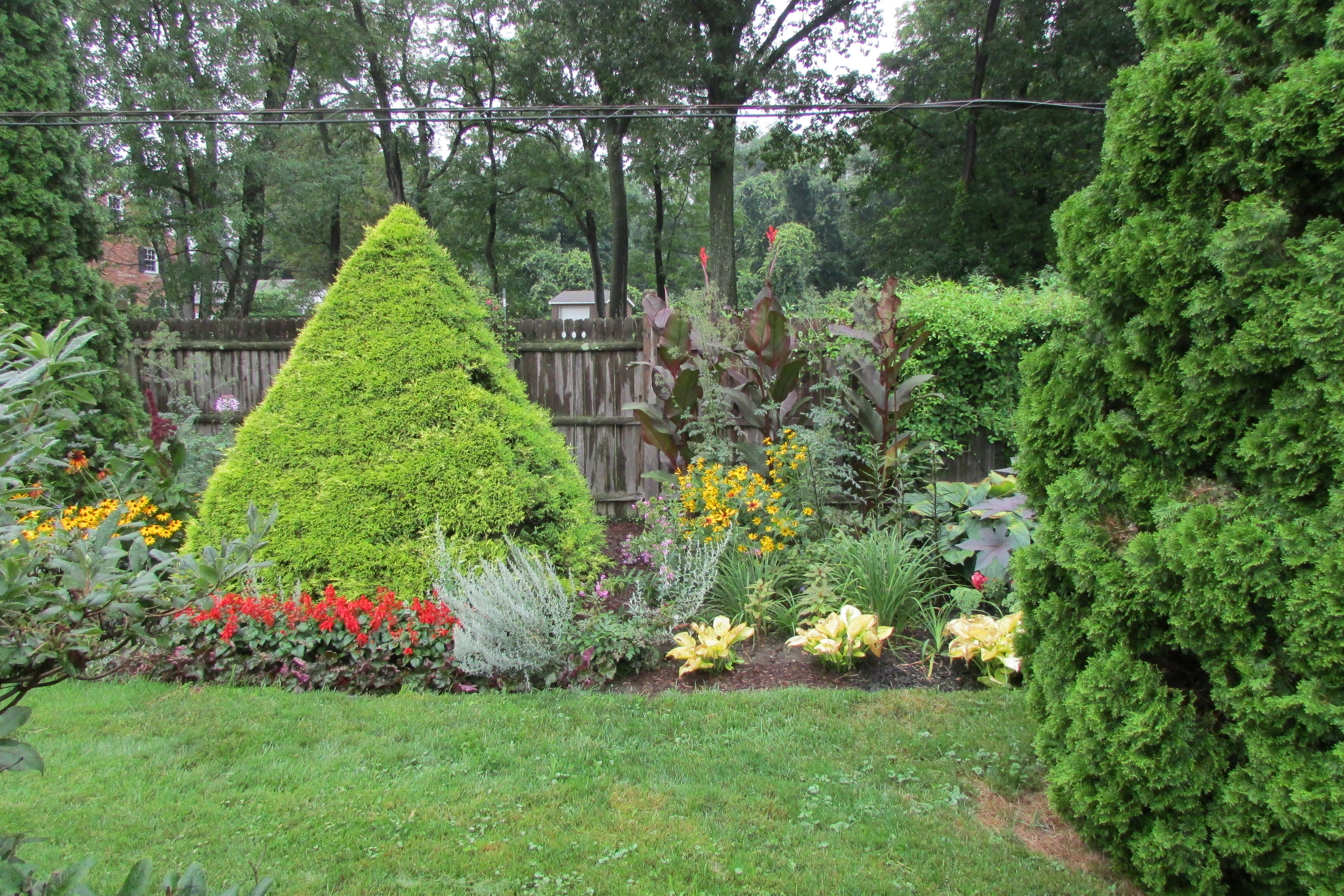 Gardening has always been my passion or some would say one of my obsessions. My interest love  of gardening, I think, was the result of three different people’s influences. My first person of influence was my maternal grandmother. Every Sunday we went to her house and she was always showing us what was blooming that week. Grandma had an old Brownie camera and almost weekly, wanted us to take her picture next to what was the most showy blooming plant of that moment. My second person of influence was my mother. Every weekend while visiting grandma’s place, my mother would go through the pile of plant material that grandma pulled out or divided, bagged it up and we took it home. Every Sunday evening, after we returned home, mom would have me help her plant the things in our back yard garden. My third influence was my father. My father grew up on a farm and as a child never went on a vacation; as an adult he wanted to see America. Two of the many places that he took us  were Mount Vernon and Colonial Williamsburg in Virginia. Seeing those garden fascinated me, and I thought, when I grew up, I would have something like that. Little did I know, as a young kid, that not one, but many people tended those gardens. This blog post shows the current results of how childhood experiences and a hopefully healthy obsession turned out.  In this post you will see  how my garden looks now, after what has been the 2016 rehabilitation of some of the beds and borders. I hope you like my little tour (click on photos to enlarge).