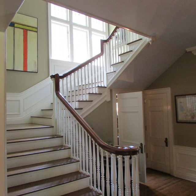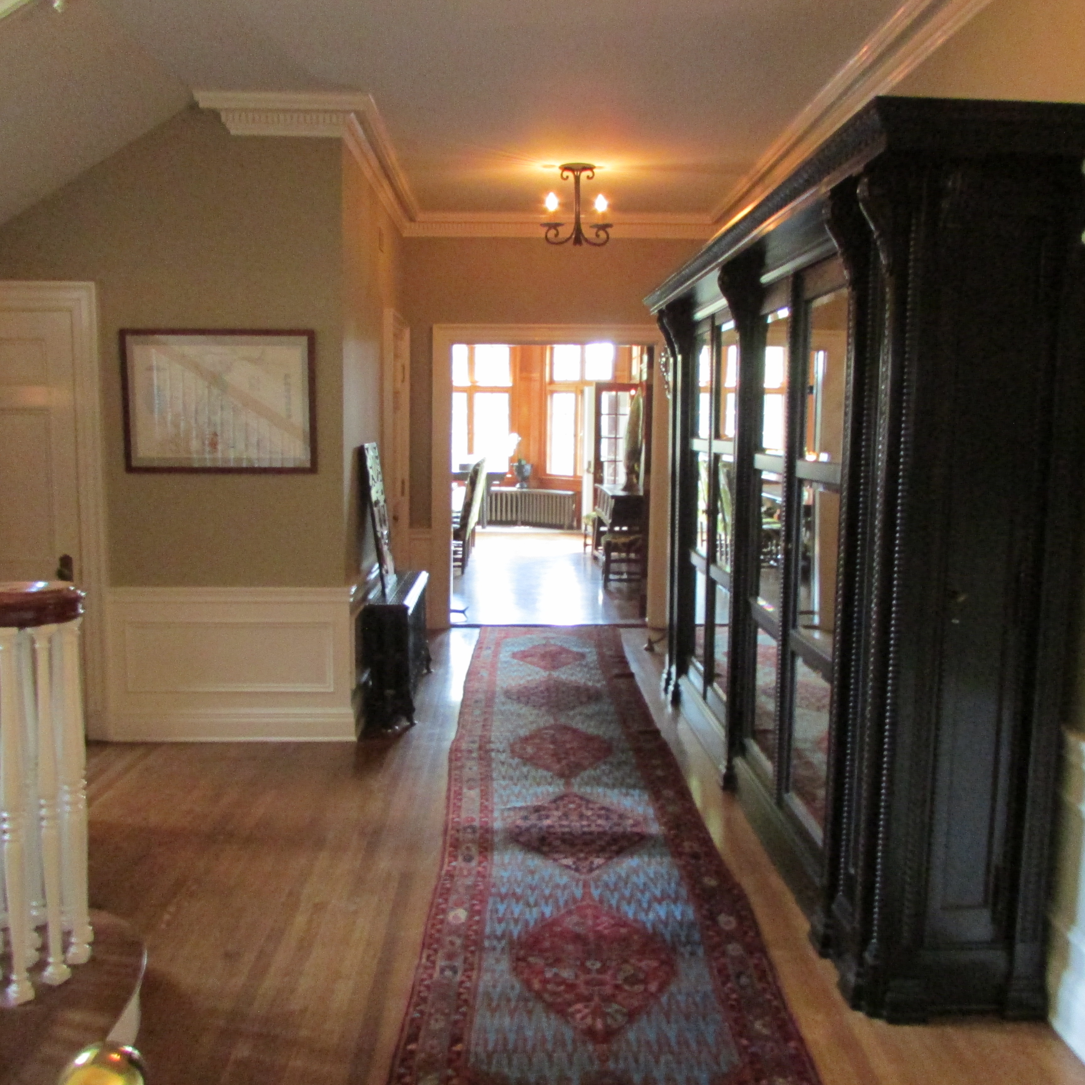 Once inside the front door, looking left from the great front hall, is the stair hall, which looks to lead to the dining room.