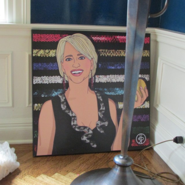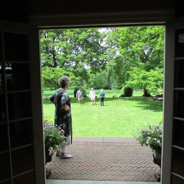 And a fun modern painting of Dorinda, queen of the castle, wearing a snake as a necklace was tucked into the corner of the room, down by the floor. (After viewing the salon, we proceeded outside to tour the grounds).