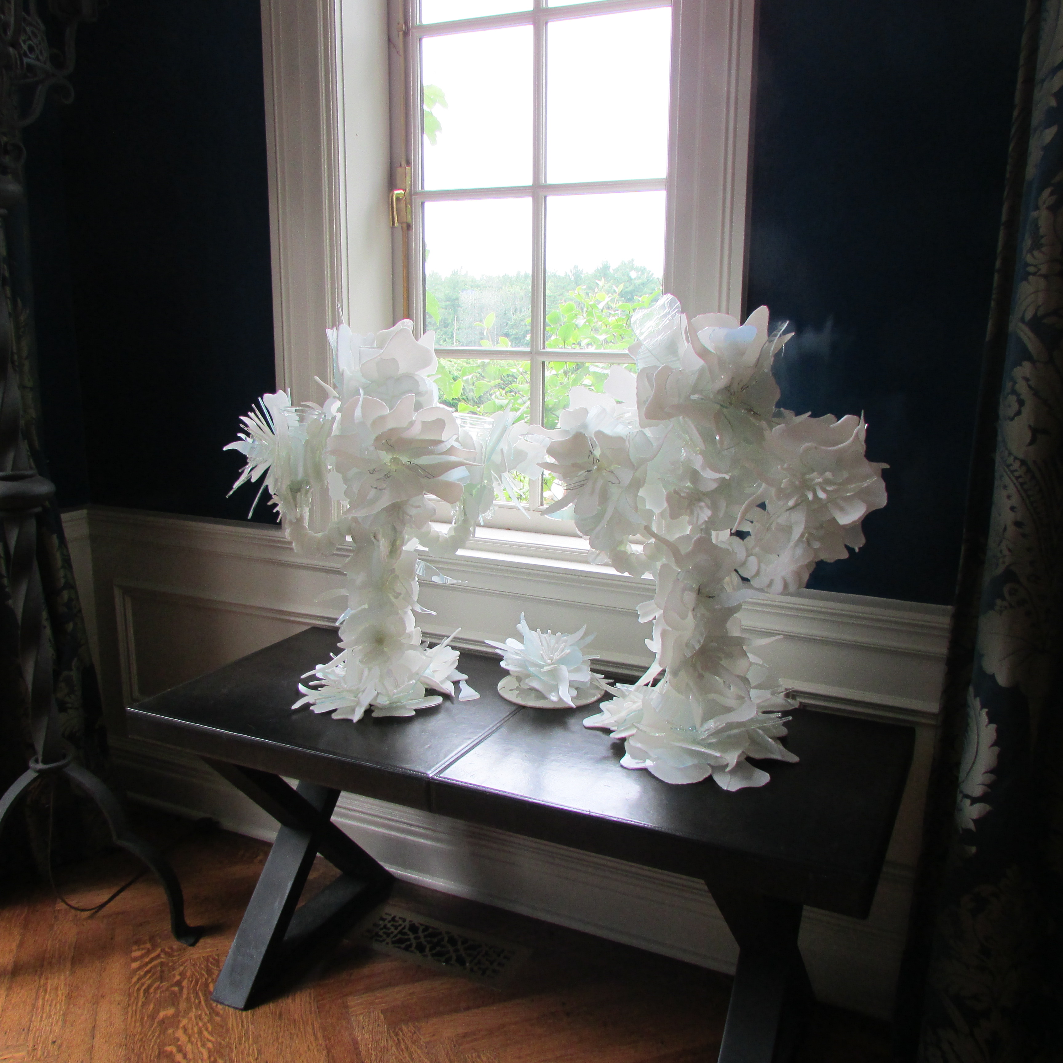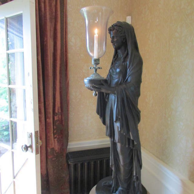 On a side table were a fanciful pair of candelabra and a votive holder (I’m guessing??)