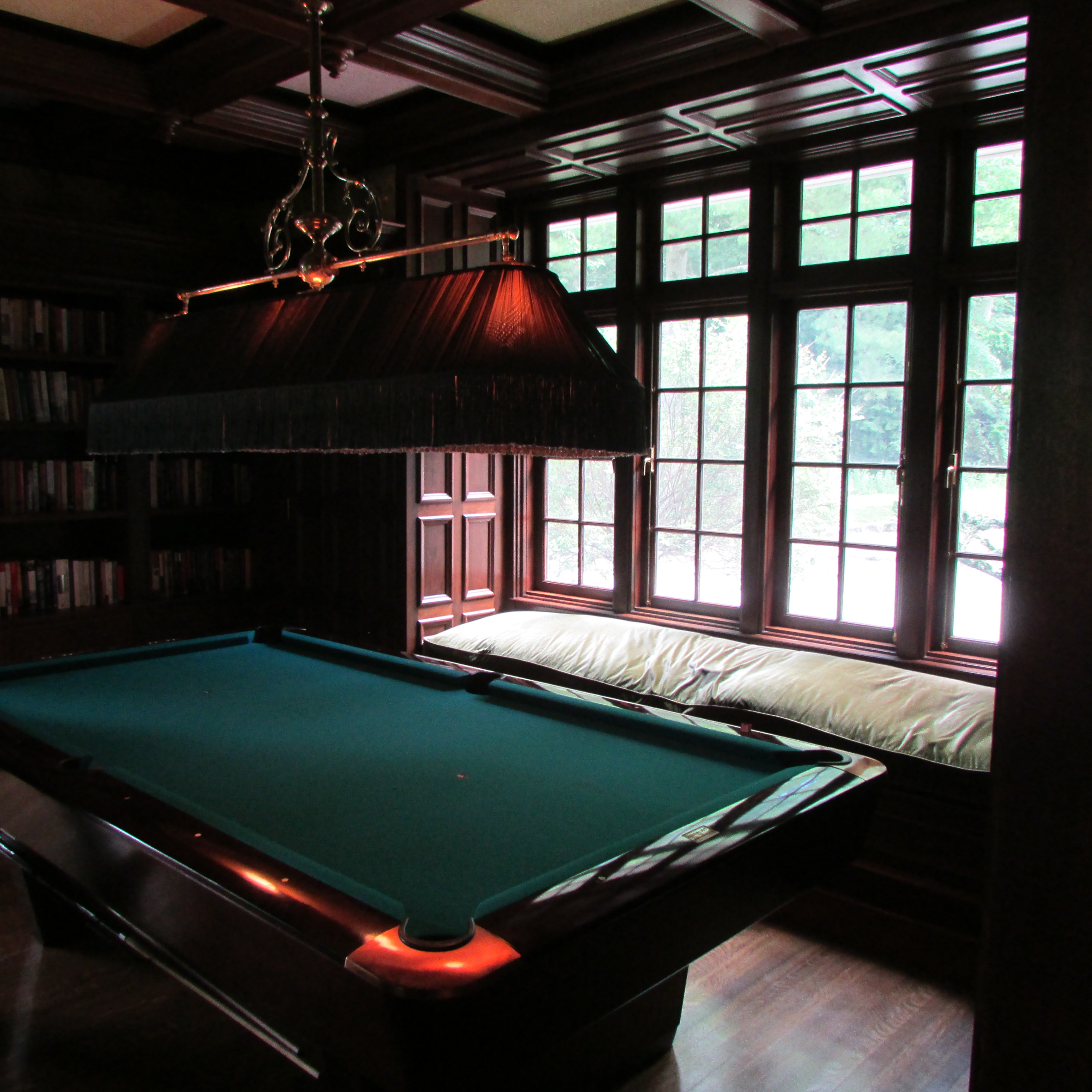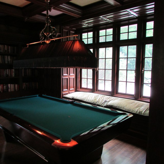 The above three photos show, what I think??? is the library, because of the built-in book cases. The first thing you come upon, when entering the room, coming from the front hall, by the front door, is the pool billiards table (what it’s probably called in a Berkshire Cottage). The above photos show the room looking from both the front and back.