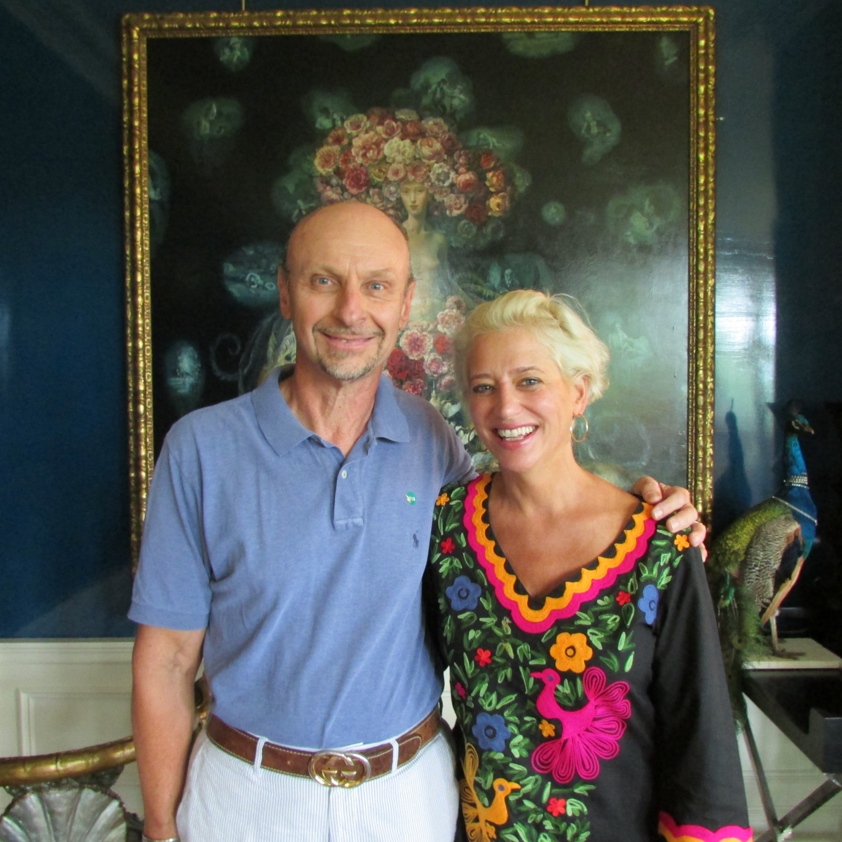 Dorinda Medley and me in her Living Room at Blue Stone Manor, on the day of the Lenox Garden Club Tour.