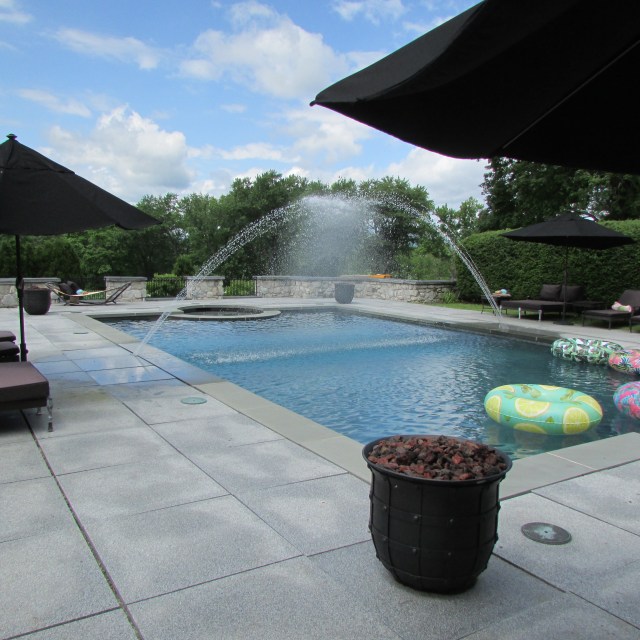 Around the pool, and by the house Dorinda has different patio areas where she can entertain guests.