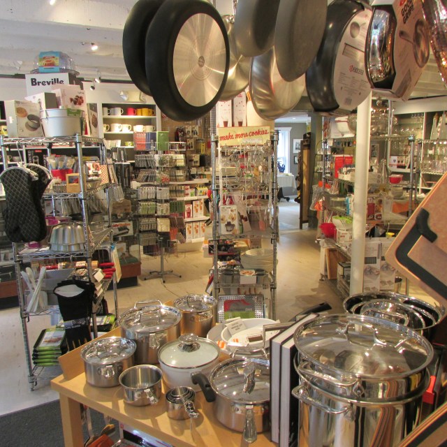 The store is filled with pots and pans, cookbooks, glassware, dishes, flatware, and serving pieces, etc. plus you can even  buy Marty’s fresh eggs, laid by his own chickens.