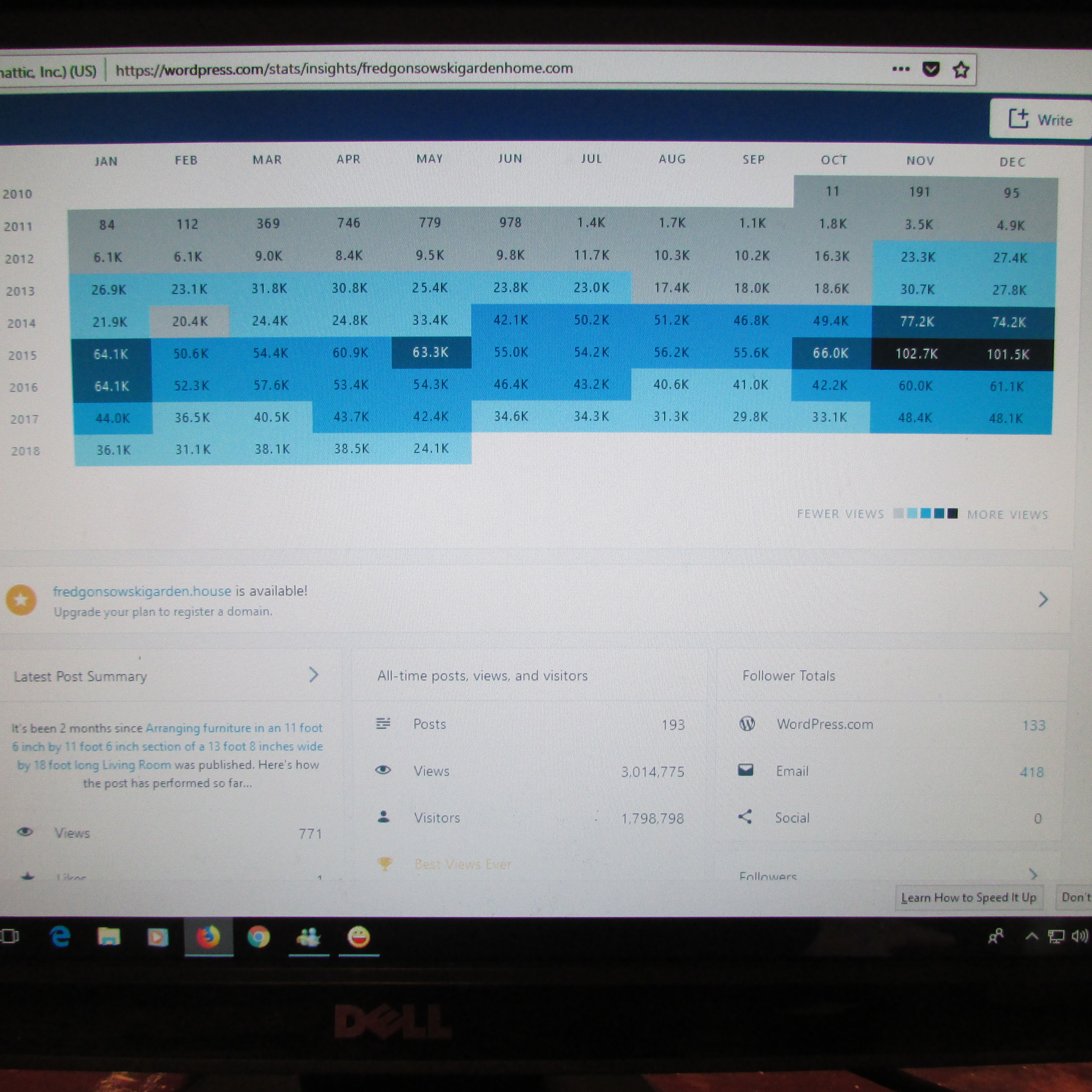 Recently my blog Fred Gonsowski Garden Home passed the Three Million point for page views/articles read, and in a way I think that was a great accomplishment.  As with all things, it wasn’t just about my writing and illustrations, but about the many people who, hundreds of thousands of times,  posted my articles on their Pinterest sites, the San Francisco Chronicle, BuzzFeed, eHow and Red Book Magazine.com who used my articles as references or resources for their pieces, which gave me some extra attention, the people who linked my website with the articles that they were writing and the many people who just told their friends to look at what I was doing.