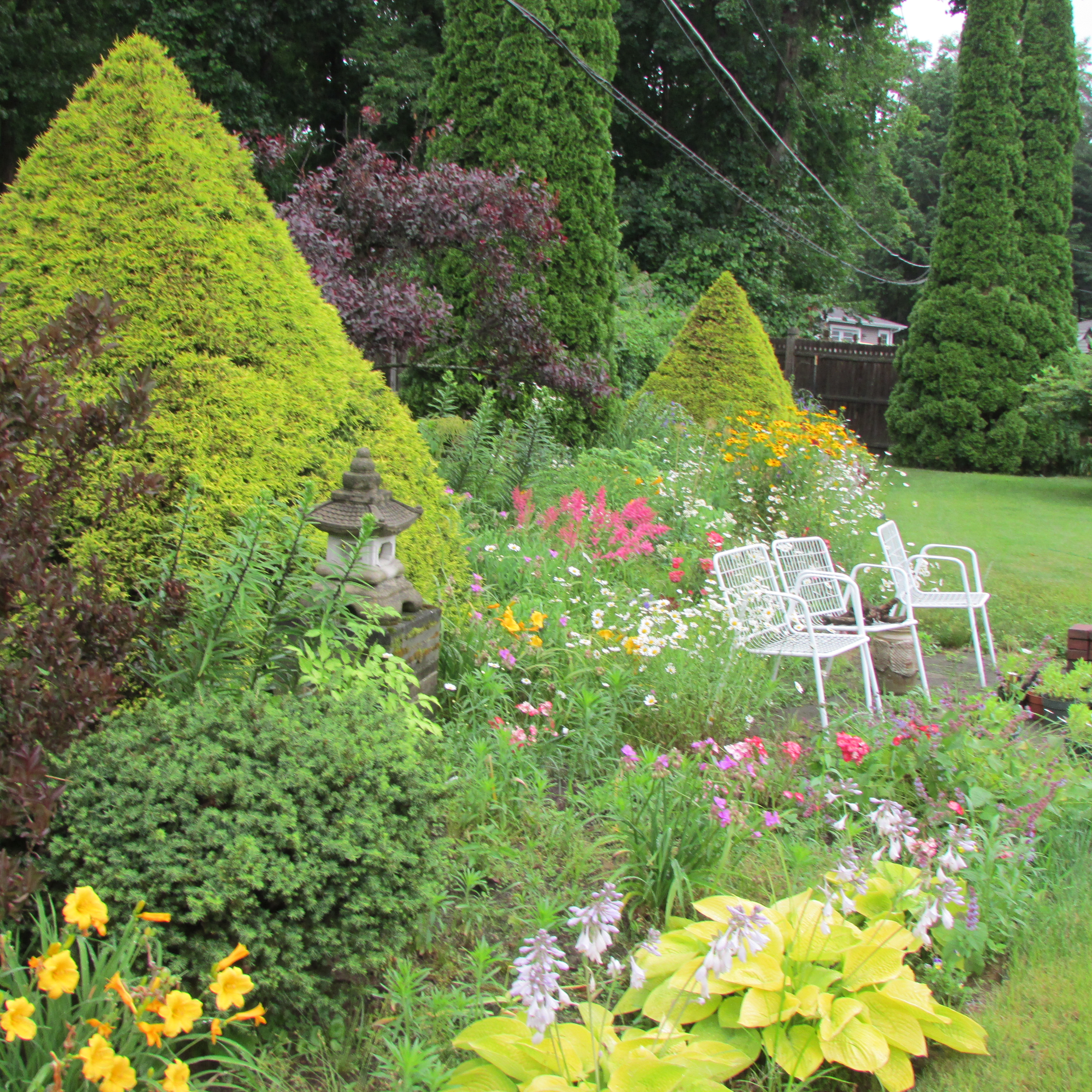 A look at the 2018 end of June garden, here at Whimsey Hill House